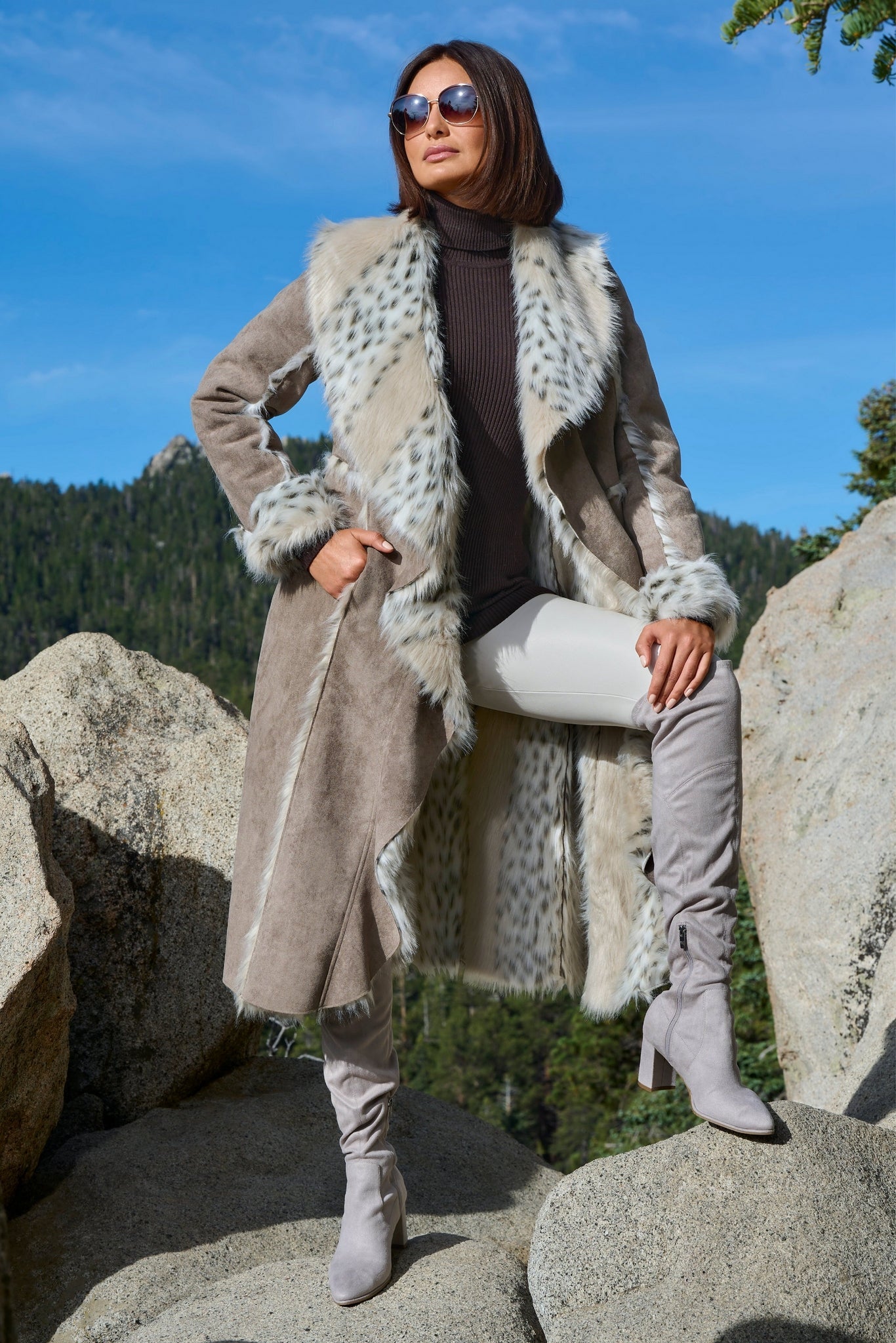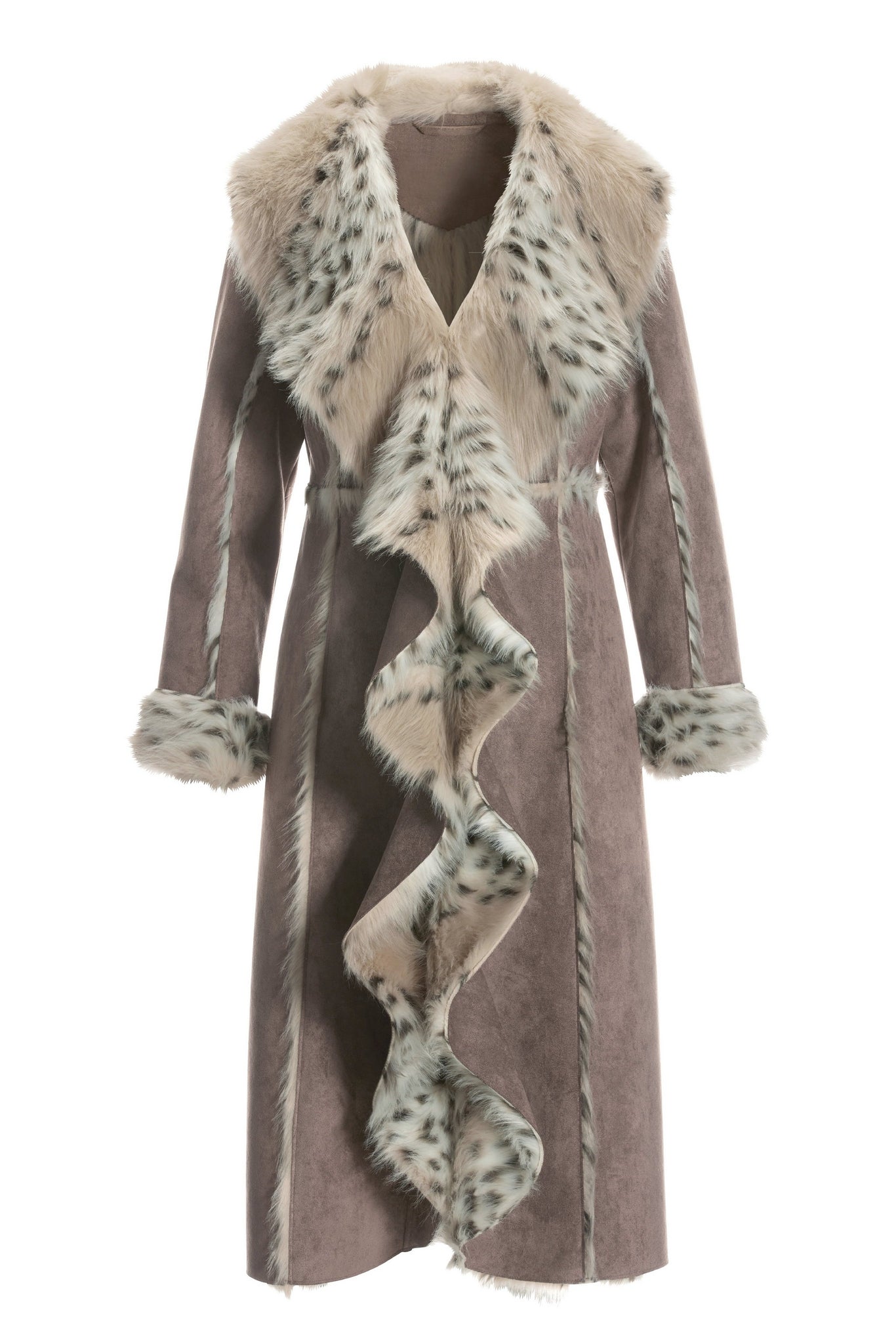 Plush inside and out, this ultra-luxe, ultra-chic winter-white coat keeps you warm and stylish with an all-over faux-fur lining and sumptuous faux-suede outer material. Versatile length and supple texture dresses up or down for any