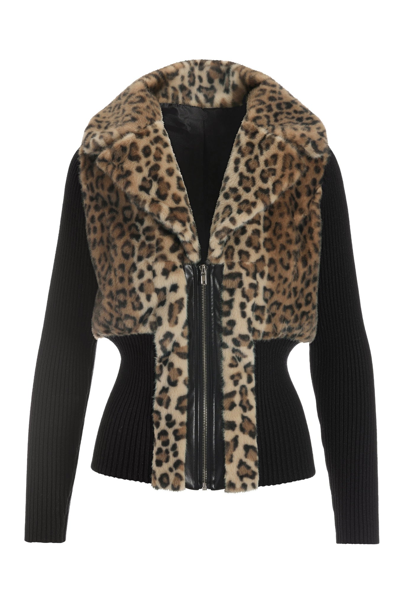 Animal Faux Fur Zip Up Cardigan Black Multi