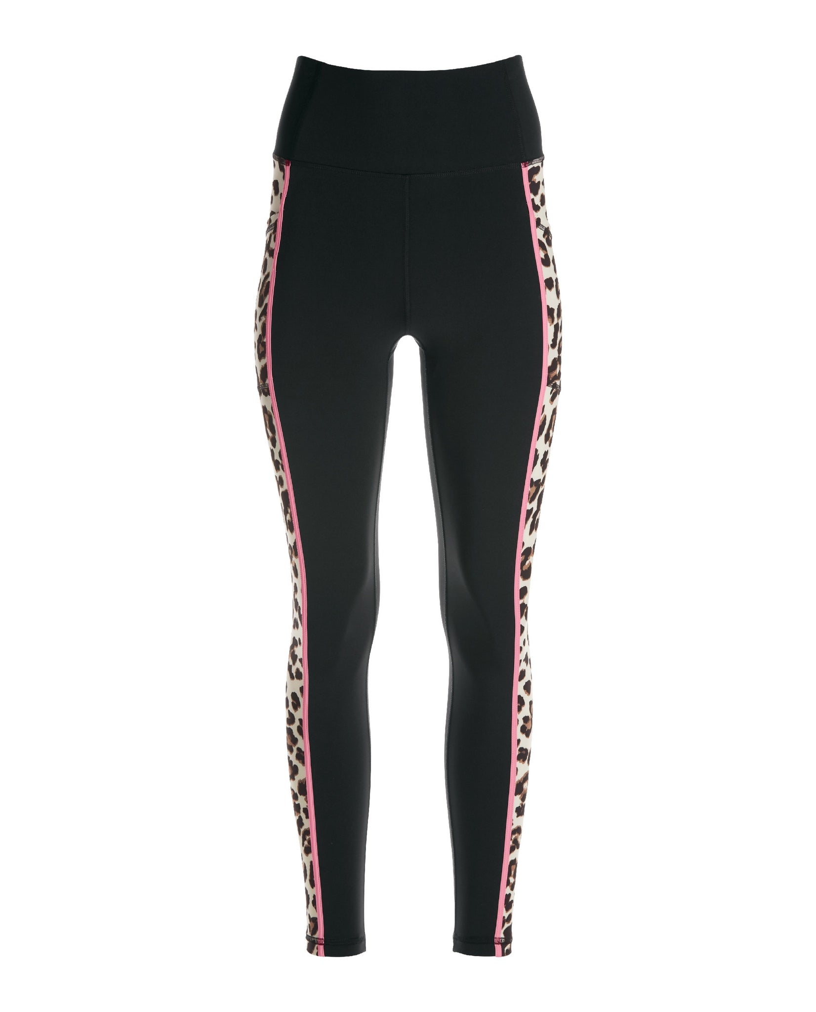 Dramatic leopard print side stripes accentuated with pink piping elevates this black legging, and keeps sporty style on the right track. Designed to smooth and support for a flawless fit, the legging's soft-spun, four-way stretch fabric takes you from yoga class to coffee stops with ease and comfort. This legging pairs perfectly with our coordinating B-Active tops and jackets from the collection.