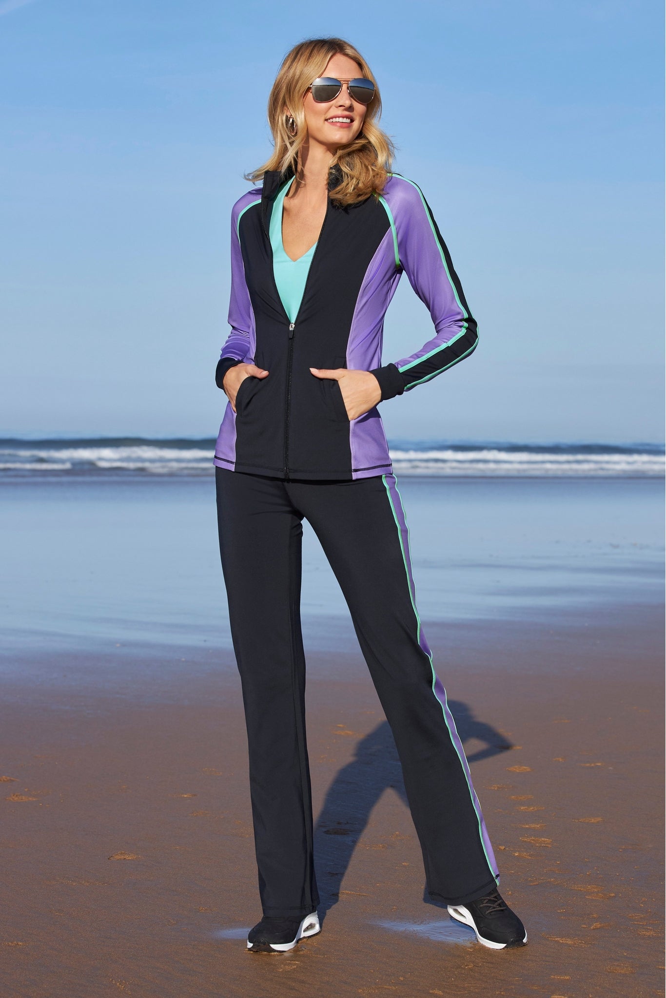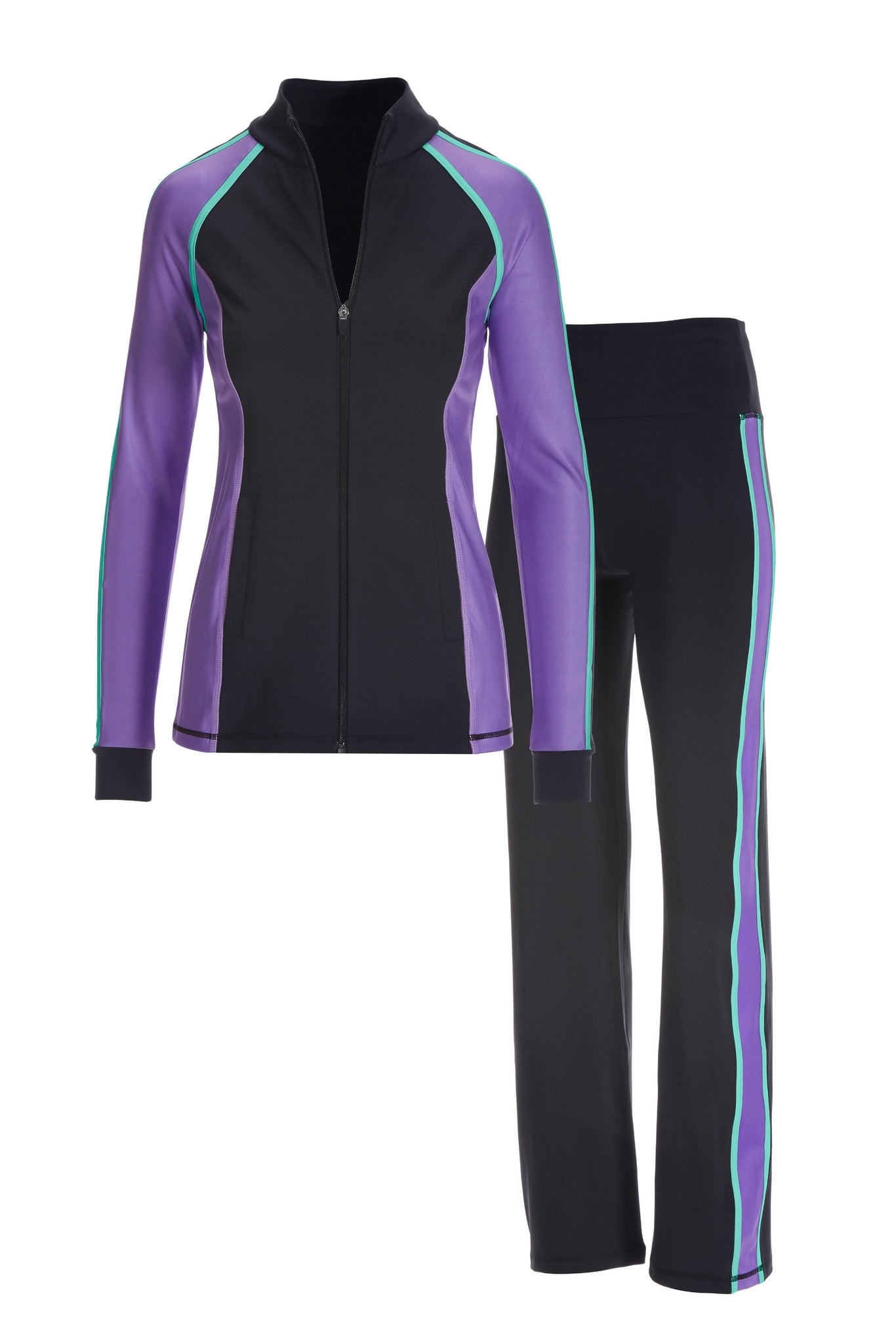 This two-piece sport set from B-Active uses color-block styling with contrasting piping accents to enhance the figure for a fresh, confident look. Enjoy the ease of a perfectly-paired warm-up with its superior comfort and fit from the soft-spun, four-way stretch performance fabric. You're out the door in no time with an effortless, pull-on pant design and quick-zip jacket. Mix and match this two-piece set with any of our coordinating B-Active tops, jackets and pants from the collection.