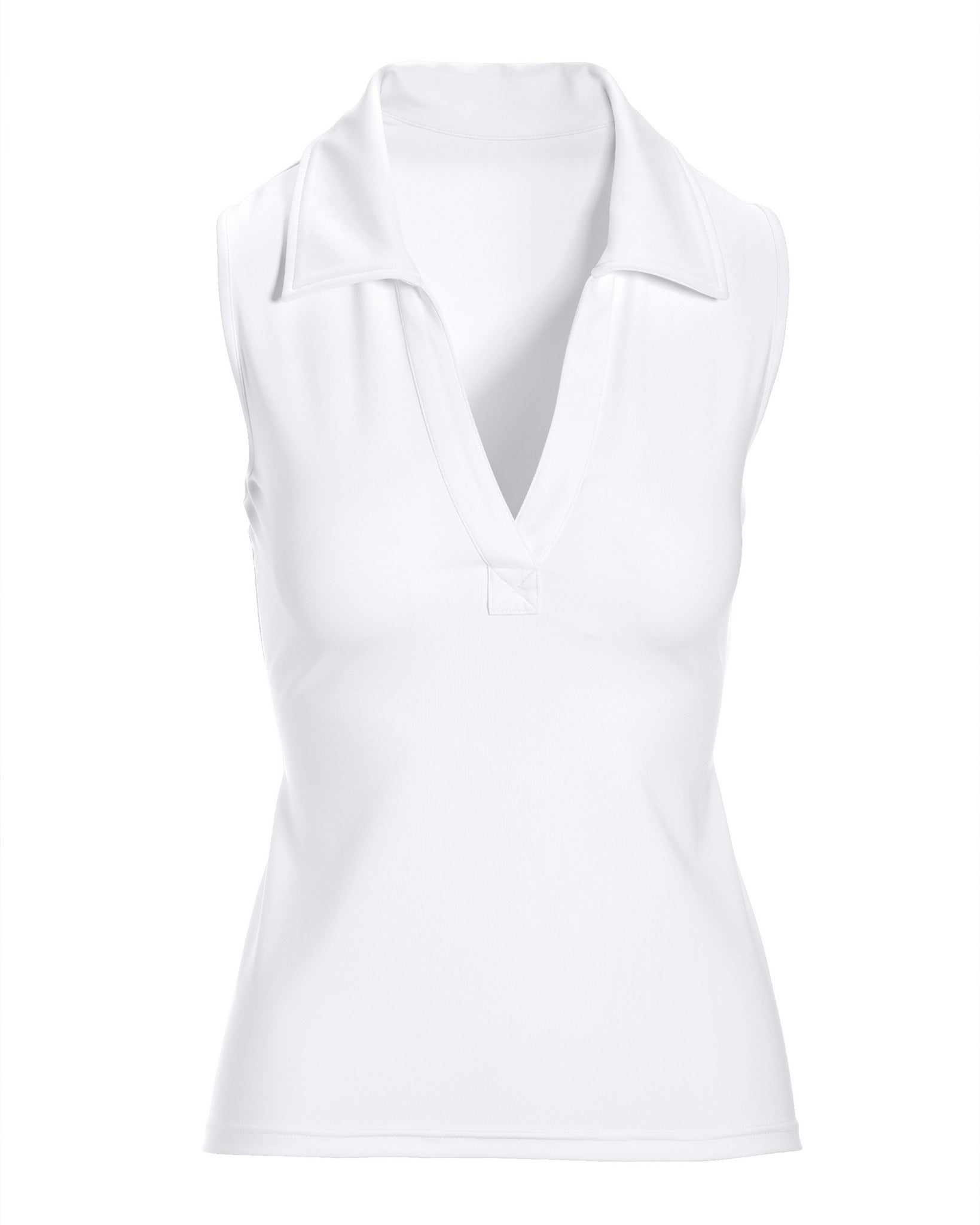 Our B-Active sleeveless polo top is a must-have for all your on-the-go plans. It features a flattering V-neckline with a pointed collar, drawing from classic sportswear aesthetics. Pair with coordinating B-Active bottoms to build comfy and stylish active looks.