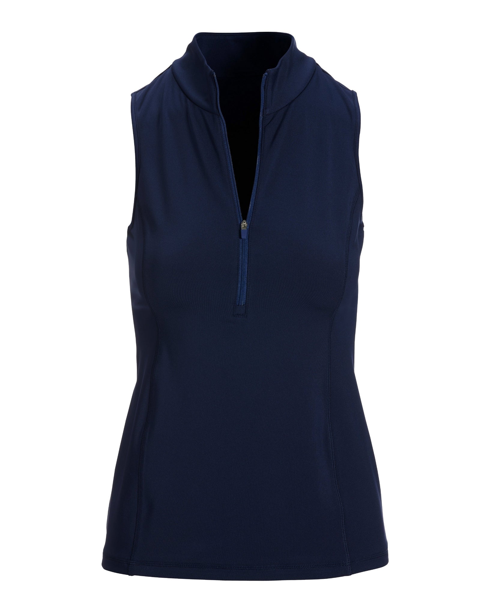 This sporty sleeveless top from B-Active uses tailored stitching to enhance curves for a confident look while enjoying the ease and superior comfort of its soft-spun, four-way stretch fabric. Zipper neckline creates a flattering V-shape (and zips up to a mock neckline for a snug feeling in cooler temps). Pair with any of our coordinating B-Active bottoms and leggings from the collection, but especially with our comfortable B-Active Skorts.