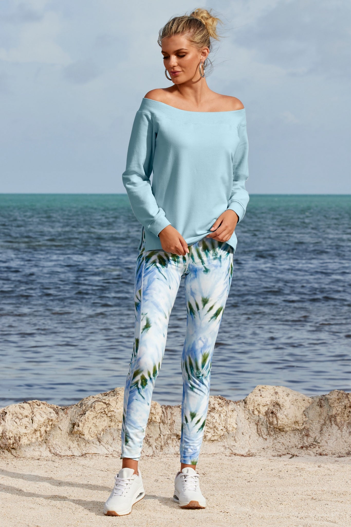 A fresh tie-dye print from B-Active keeps your sporty style on the right track. Designed to smooth and support for a flawless fit, you'll look and feel confident while enjoying the ease and superior comfort of the legging's soft-spun, four-way stretch fabric. For a coordinating, laid-back look, pair these leggings with our French terry slouchy sweatshirt.