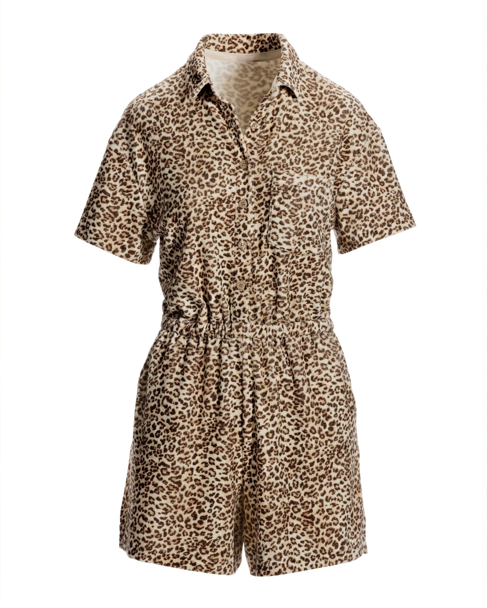 Our beach terry romper features a mini cheetah print as a stylish update for your seasonal wardrobe. This one-and-done piece is designed with a button-up placket, pointed collar, and an elastic waist for ease. Paired with sandals or sneakers, it easily moves beyond the beach in comfort.