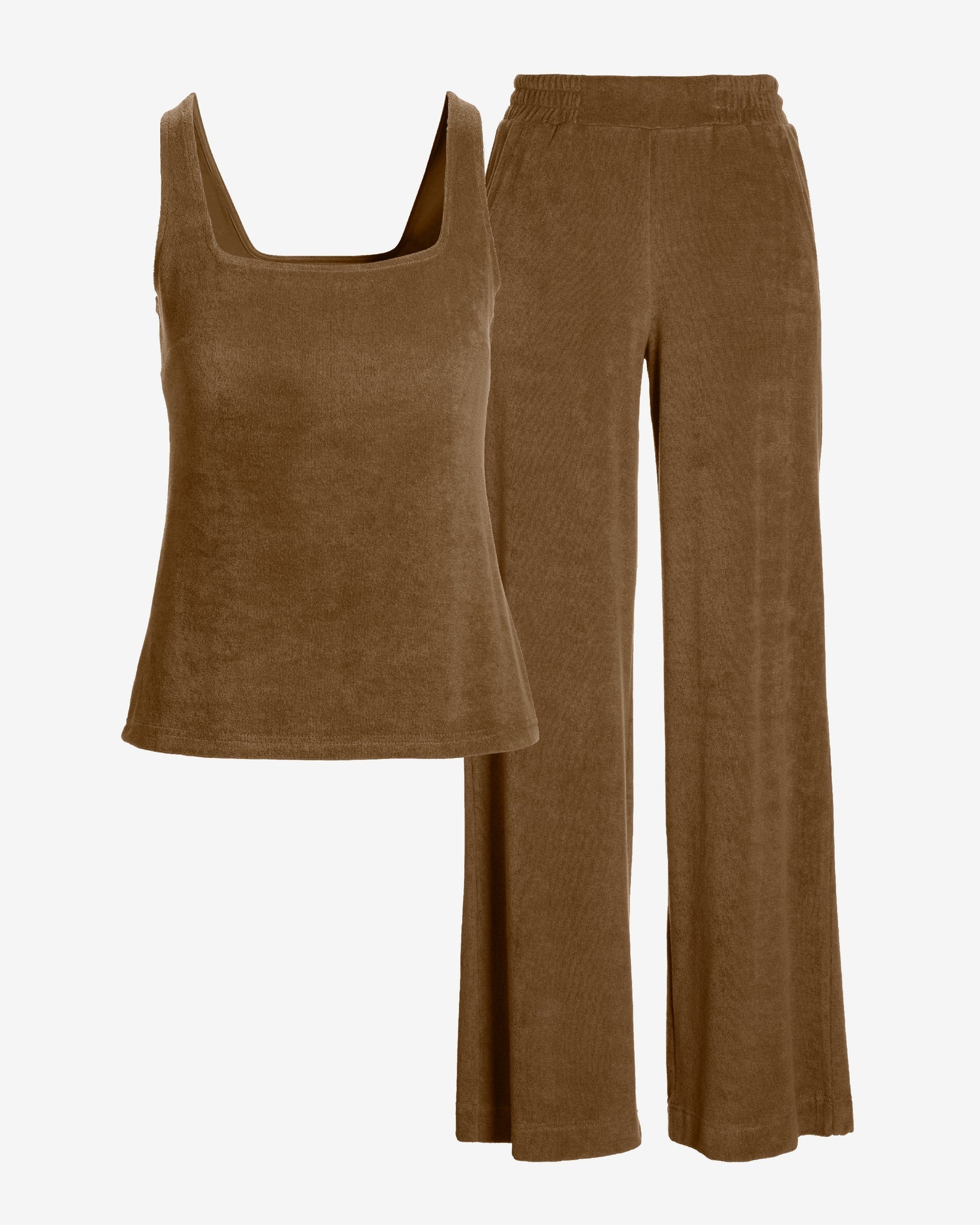 Beach Terry Square Neck and Wide Leg Pant Set Toasted Coconut