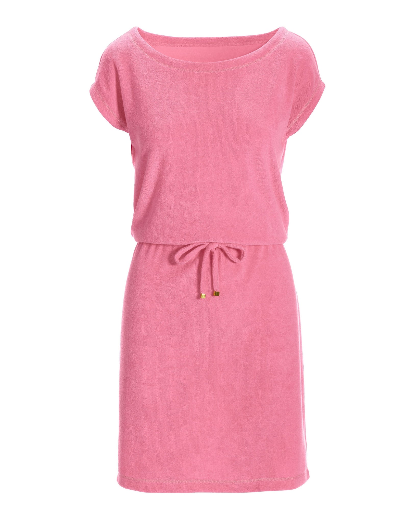 Beach Terry Wide Neck Drawstring Dress Sachet Pink