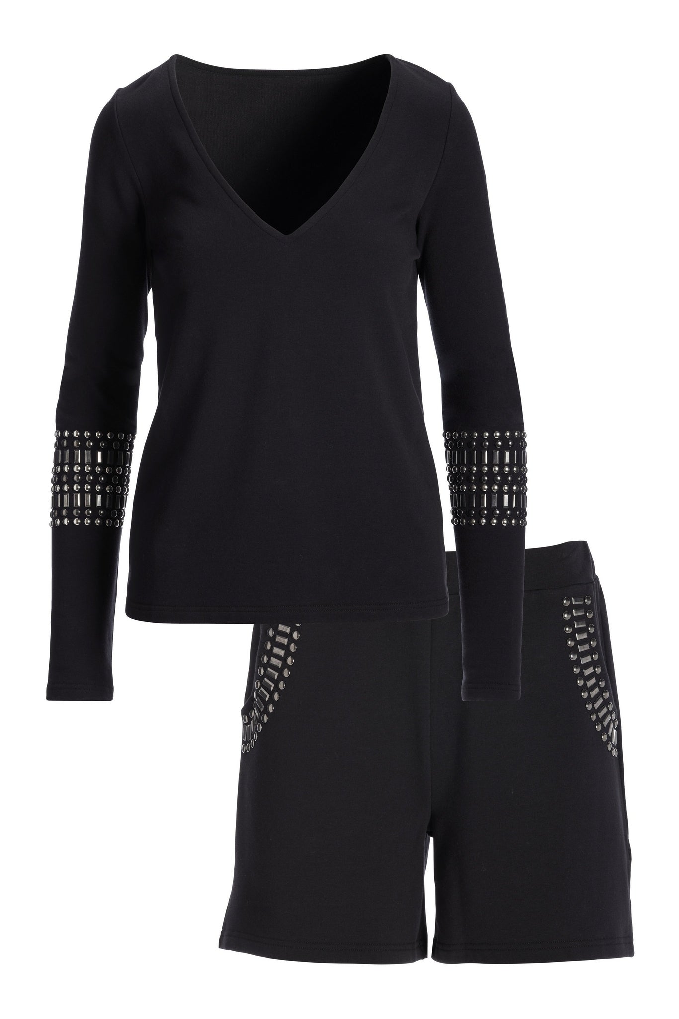 For any day or every weekend, this sporty short set in so-soft French terry takes athleisure style to next level with bold bead embellishment on the long-sleeve pullover and effortless shorts. Create versatile mix and match looks with your favorite bottoms and tops.
