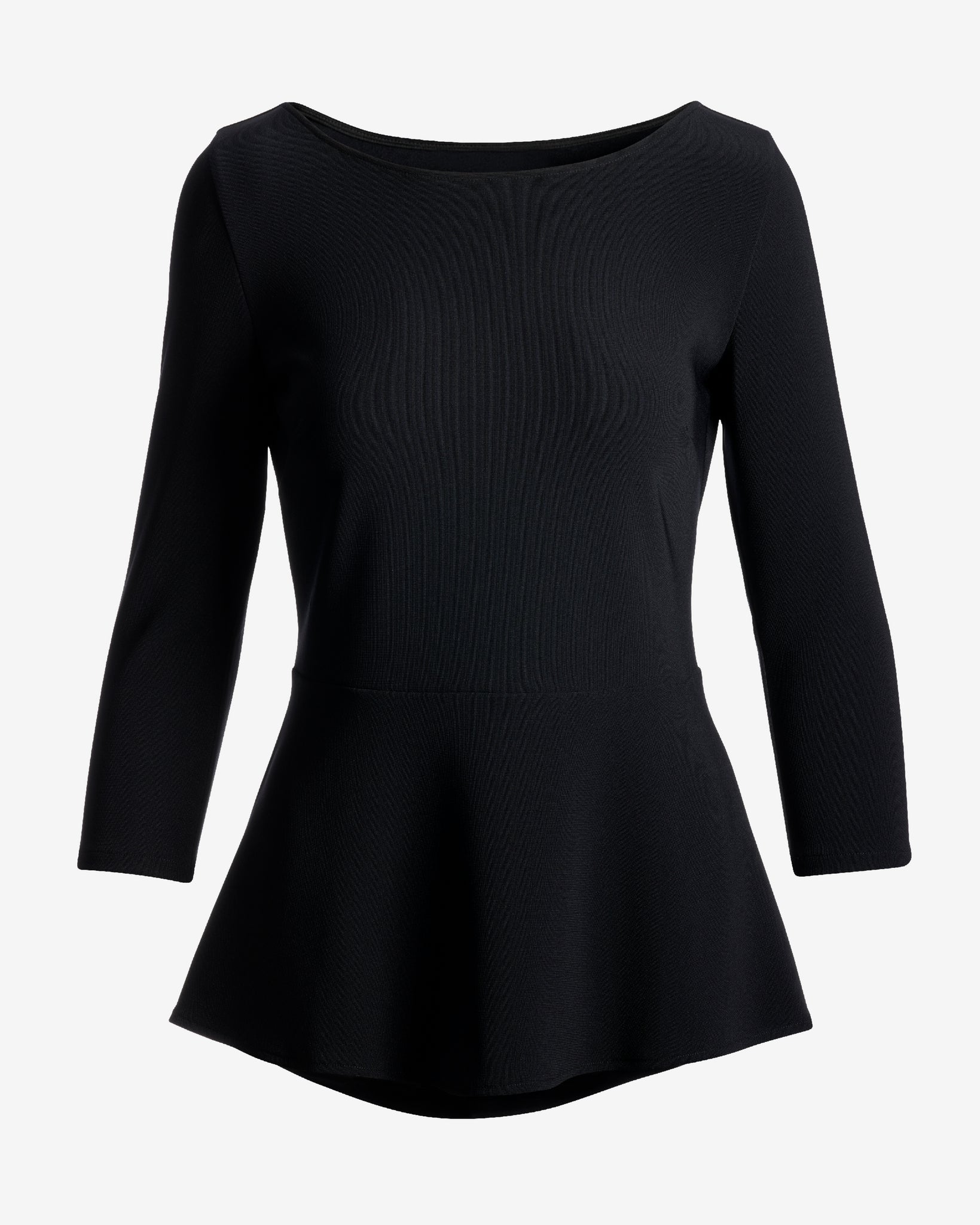 Beyond Travel Ballet Neck Peplum Top Jet Black
