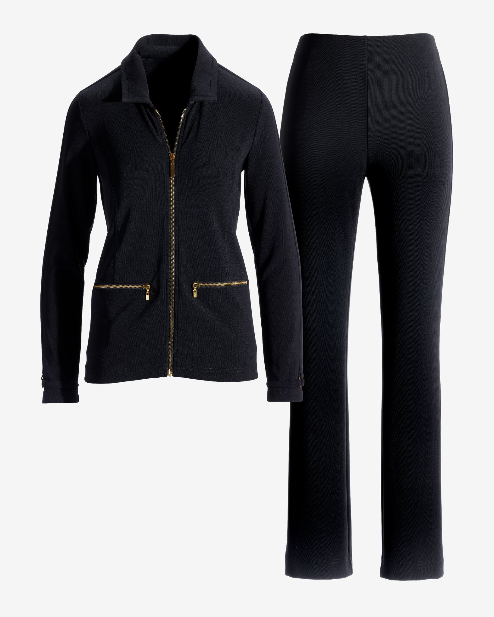 Our Beyond Travel Collared Sport Set features a pointed-collar jacket with front zip closure and zip waist pockets, paired to an easy, pull-on pant. It’s made with our exclusive double-knit, four-way stretch fabric that’s wrinkle-resistant for polished comfort anywhere and everywhere. Build your wardrobe with other Beyond Travel pieces to create versatile day-to-night looks.