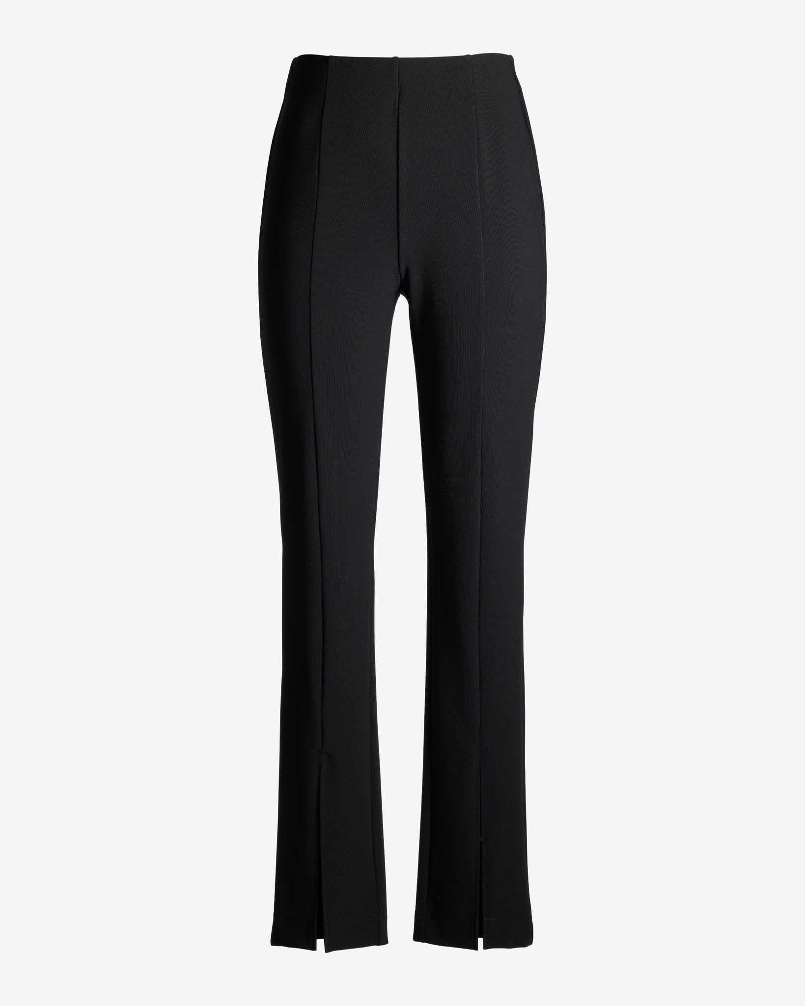 These high‑rise pants are cut from a soft, four‑way stretch fabric that moves with you from desk to dinner. The tailored fit through the hip and thigh flares slightly at the knee, while front slits add just enough edge. Pair with a tucked‑in blouse or a cropped jacket for an effortlessly polished look.