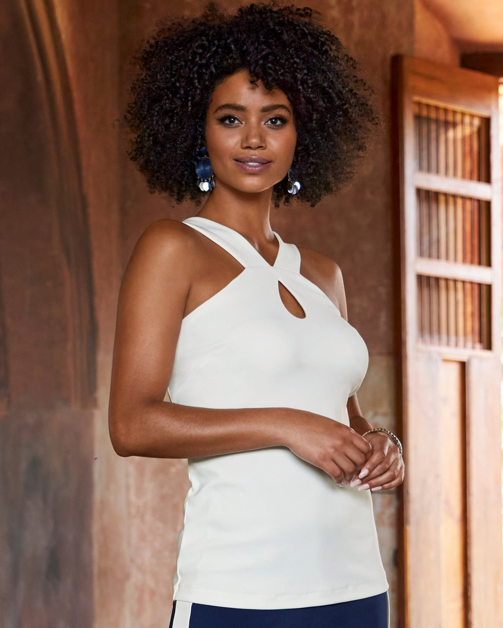 An always flattering cut-in neckline and keyhole detail bring just the right amount of sexy appeal to this tunic-length top. Wrinkle-resistant fabrication promises to keep you both comfortable and chic wherever your day may lead. Wear and pair this versatile knit top with your favorite Beyond Travel Knit Collection pieces, or mix things up with sophisticated jackets and bottoms to create distinctive outfits every season.