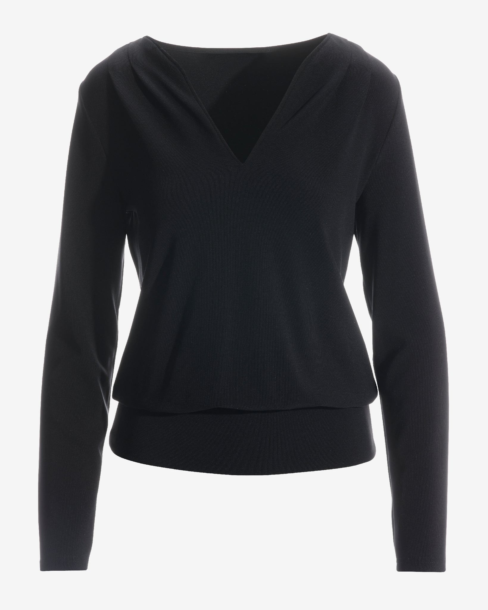 Our Beyond Travel Long Sleeve Stand Collar Blouson Top features a stand-collar design, a V-neckline, and a banded blouson hem. It’s made with our exclusive double-knit, four-way stretch fabric that’s wrinkle-resistant for polished comfort anywhere and everywhere. Pair with other Beyond Travel pieces to build versatile day-to-night looks with travel-friendly packability.