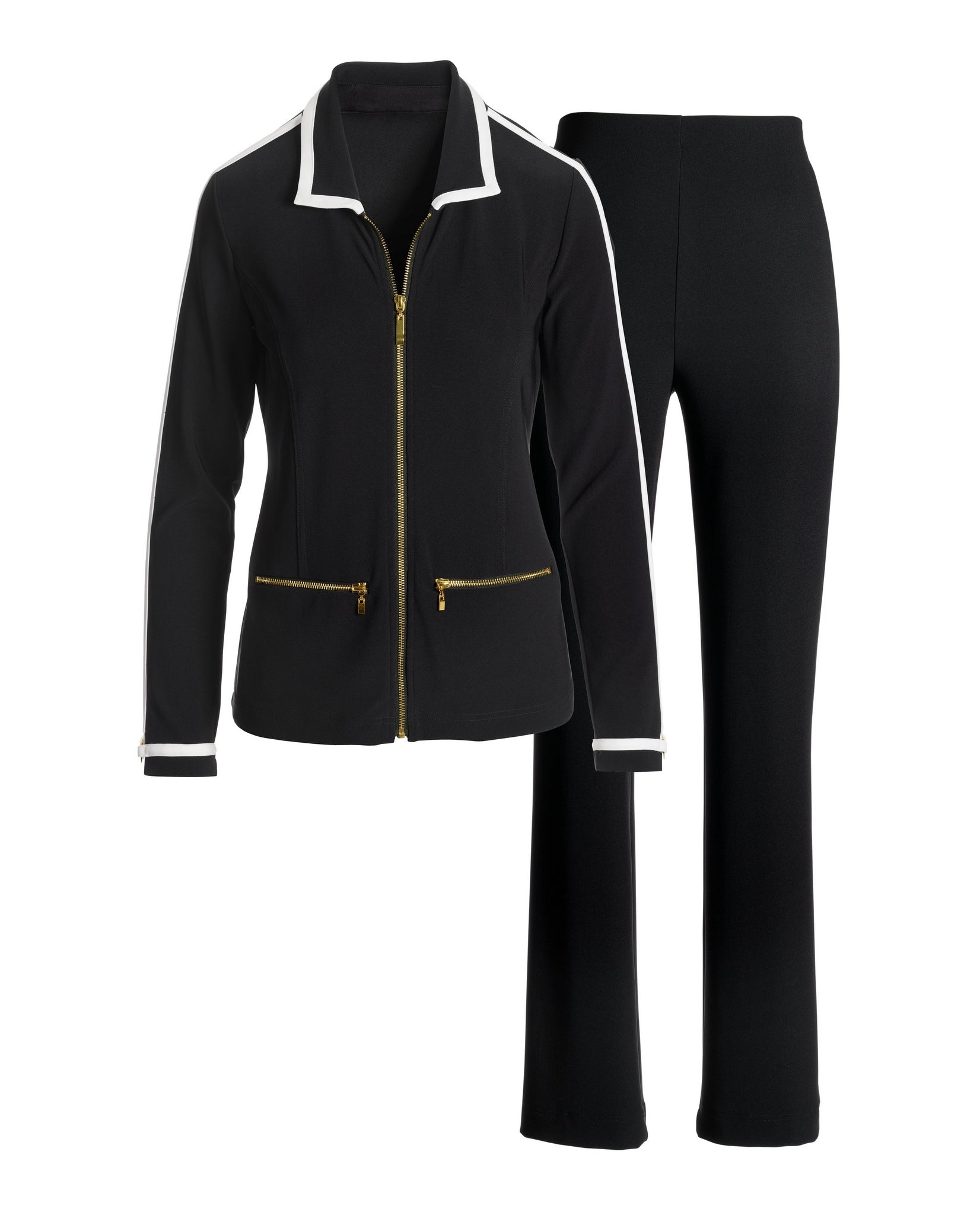 Beyond Travel Piped Collared Sport Set Jet Black Ivory Coast