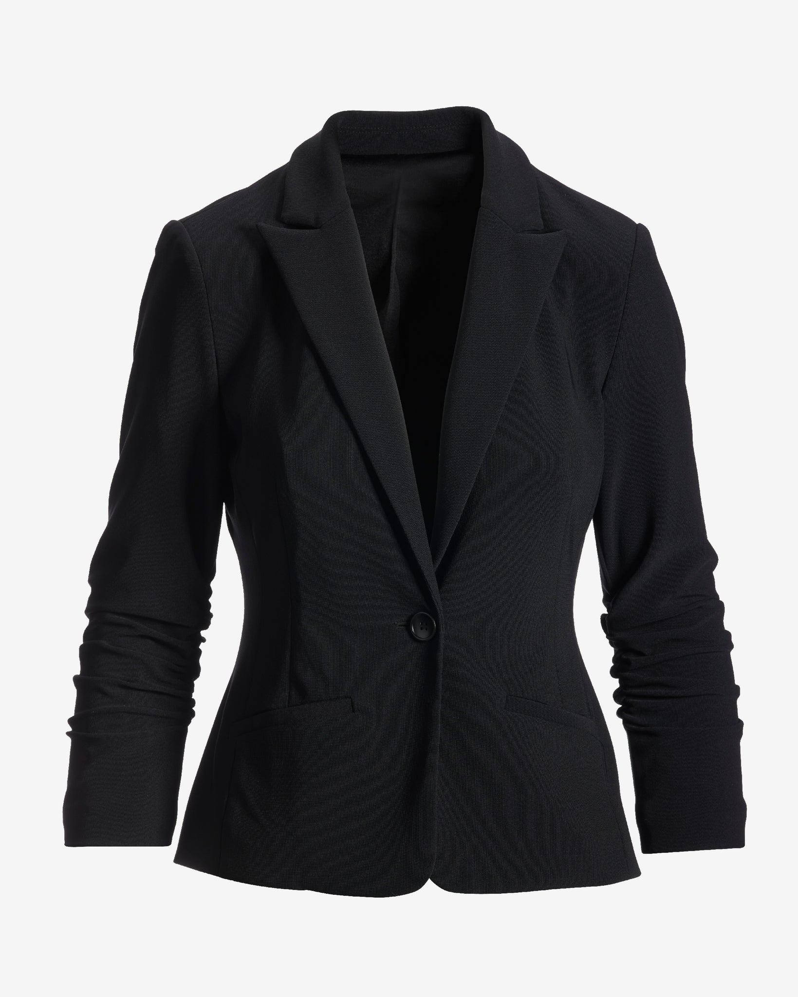 Beyond Travel Short Ruched Sleeve Blazer Jet Black