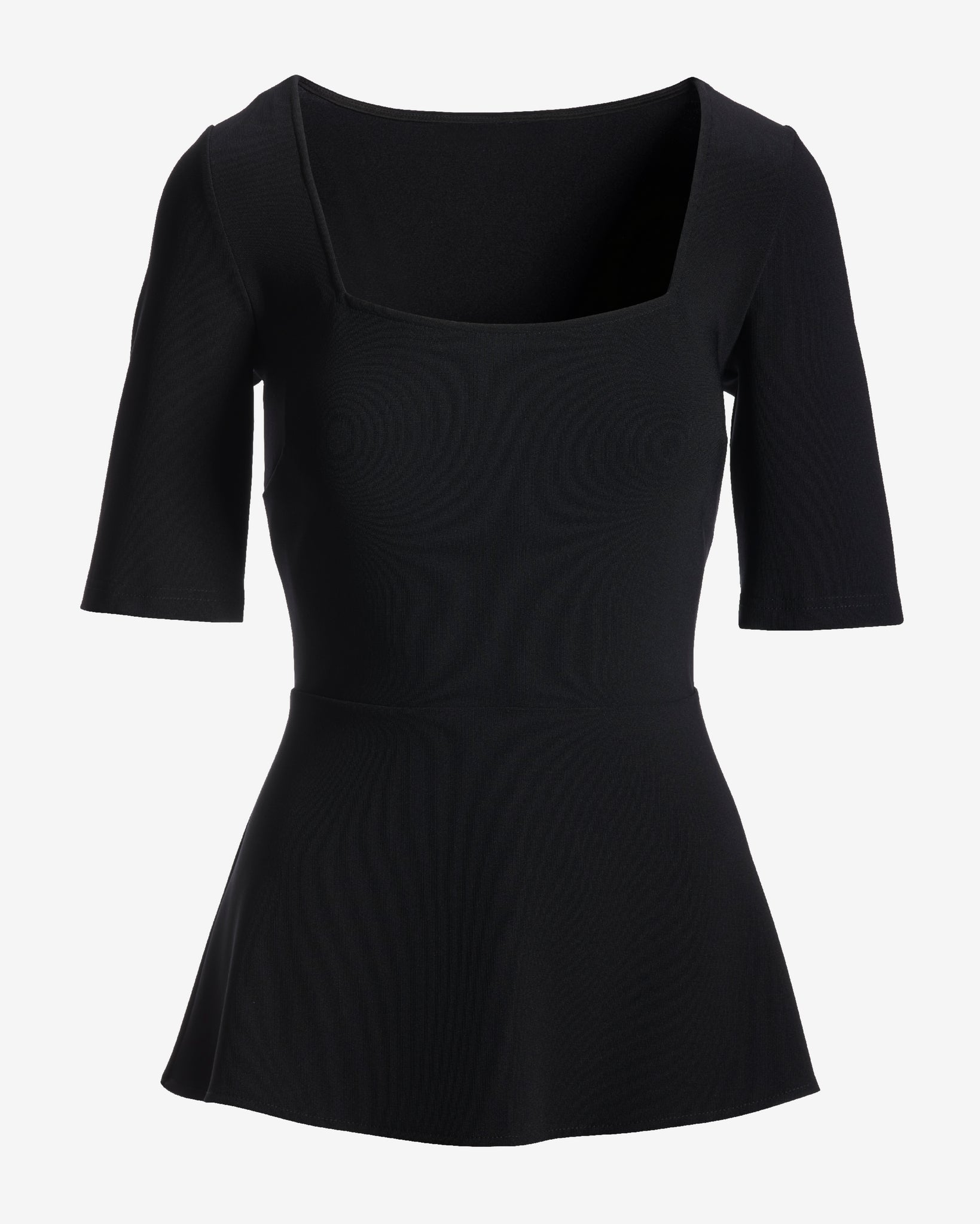 Beyond Travel Square Neck Elbow Sleeve Peplum Top Jet Black