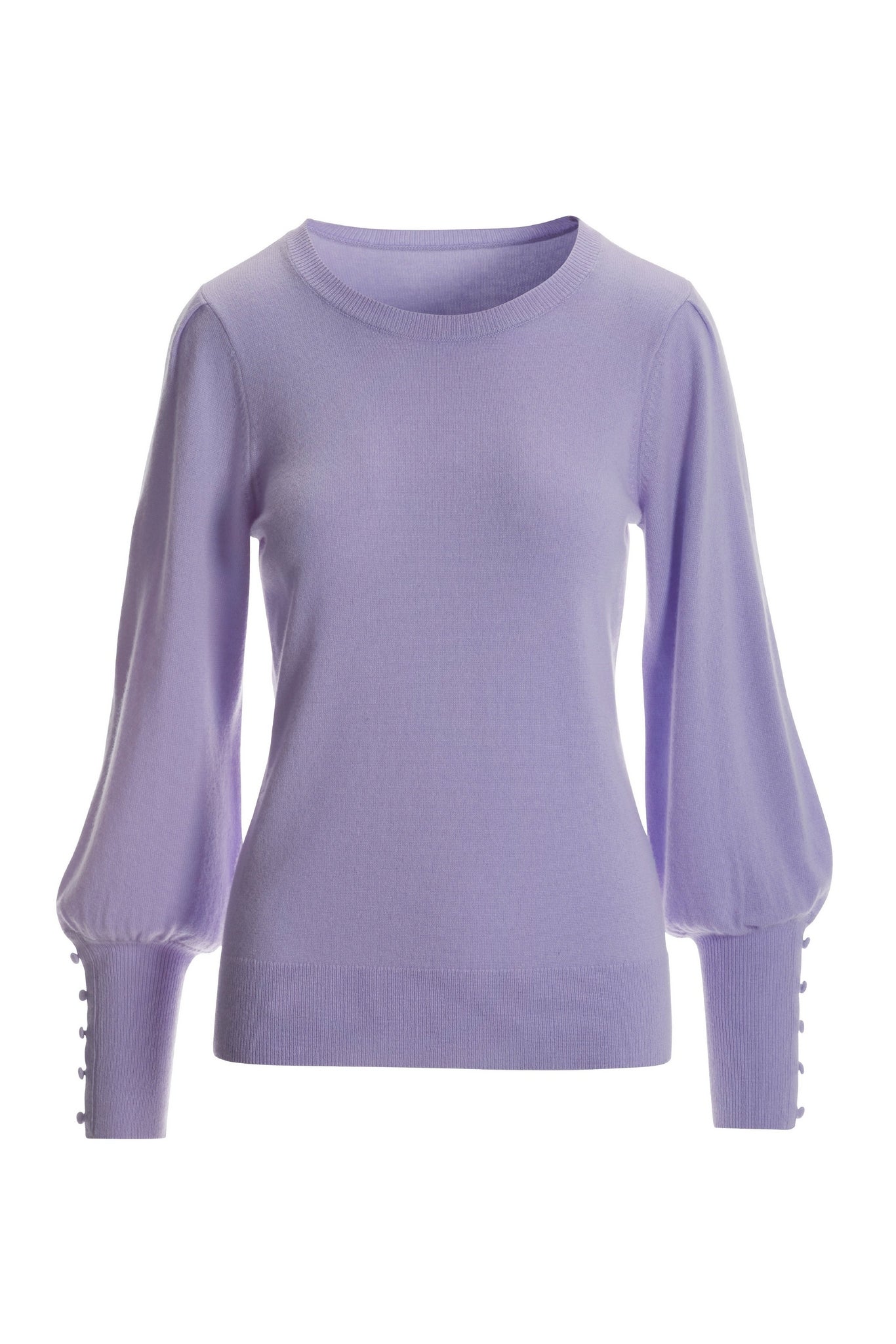 Cashmere Button-Cuff Puff-Sleeve Sweater Lavender
