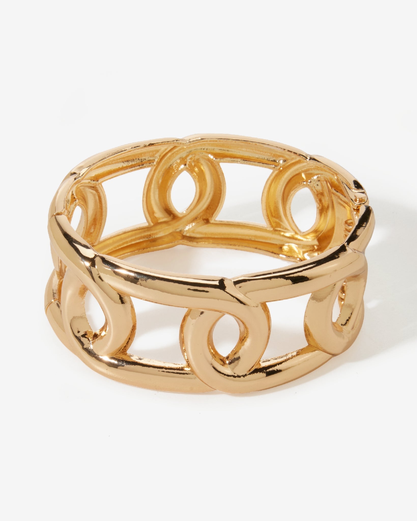 Our Chain Link Cuff is a timeless addition to your accessory collection. Designed with interlocking gold-tone links, this bold yet refined piece promises to be a favorite, polishing off your look for many years to come.