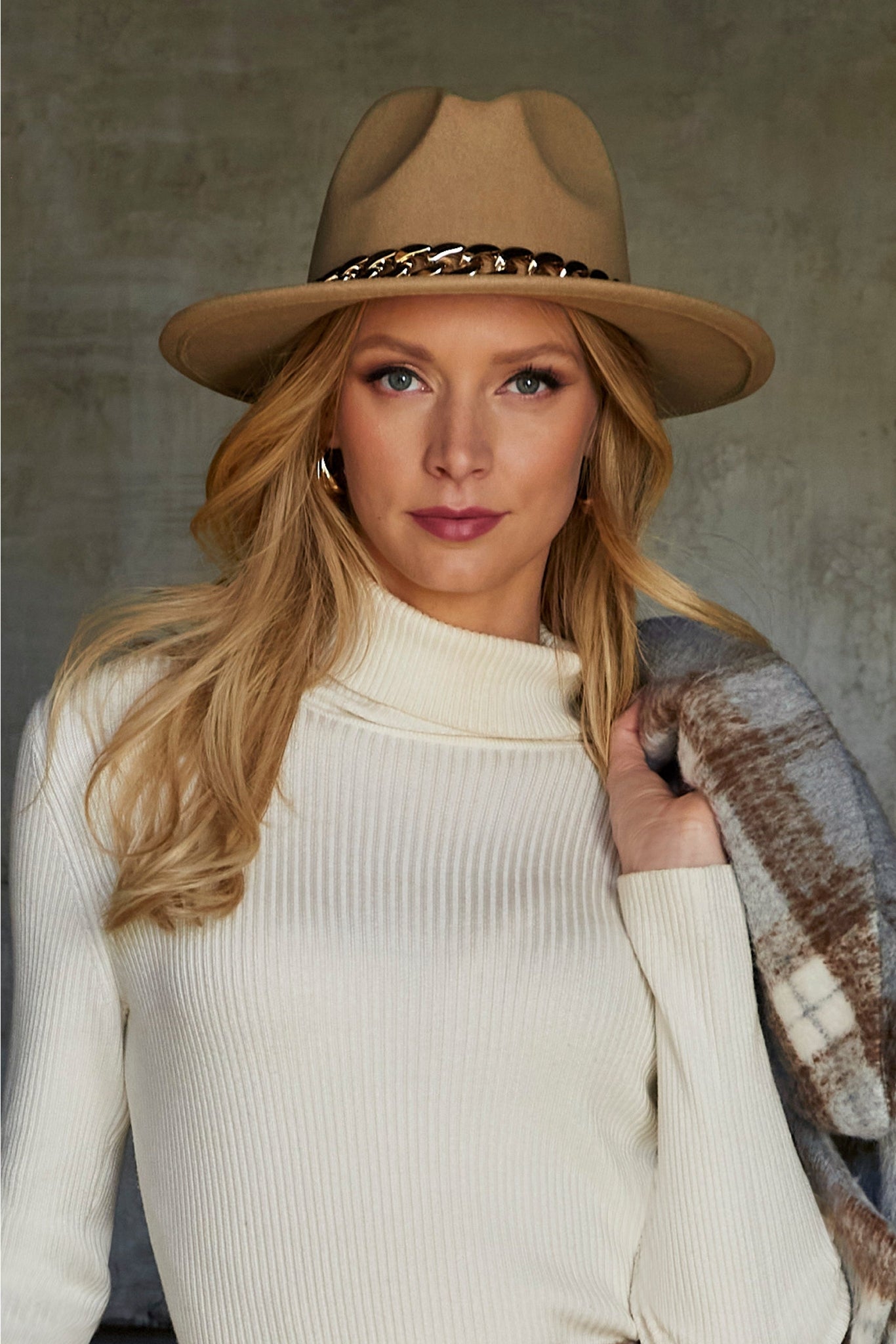 Whether blocking the sun by day or simply adding finesse to night-out looks, this chunky chain wide brim hat is a must-have accessory.