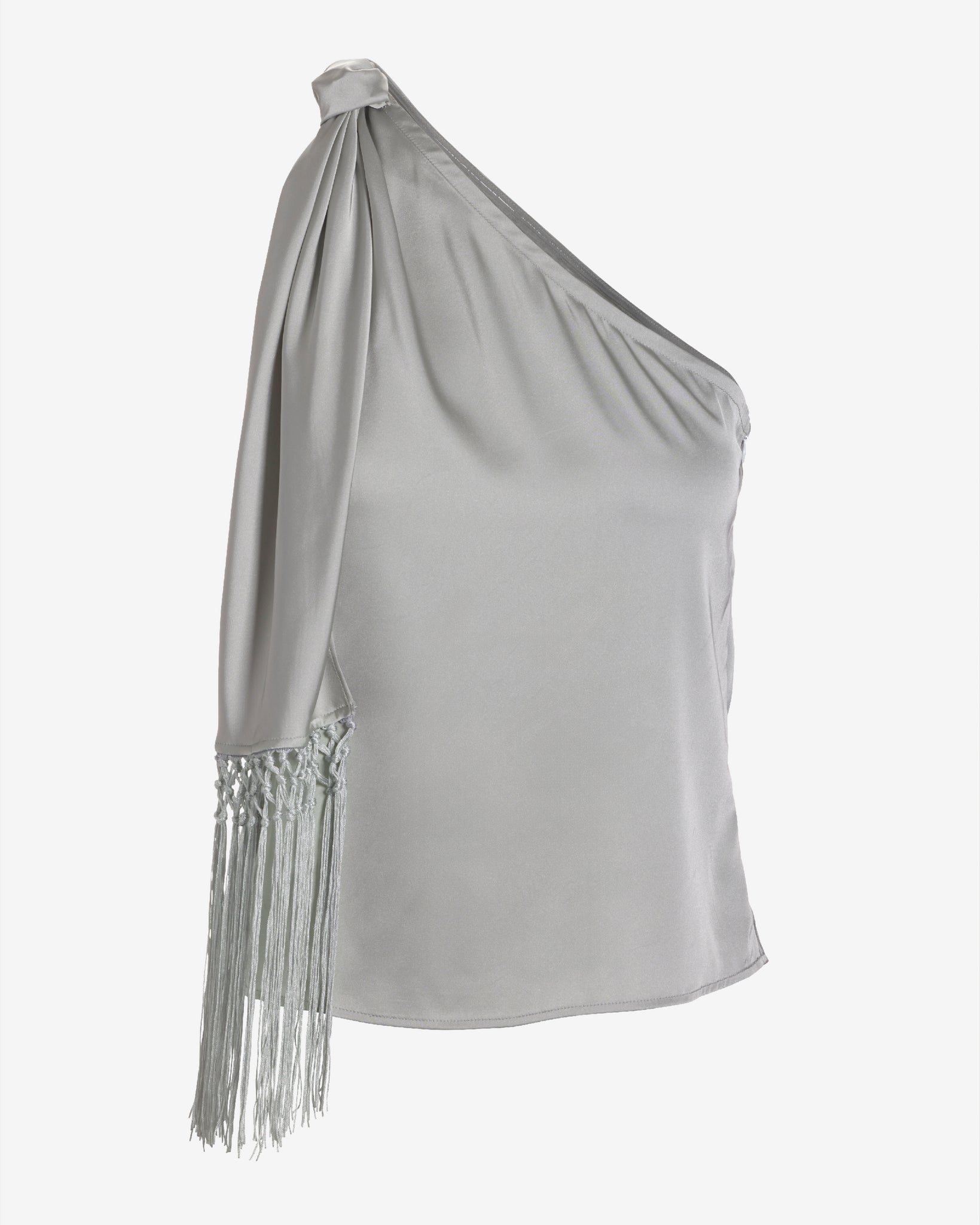 Charmeuse Fringe One Shoulder Blouse Silver