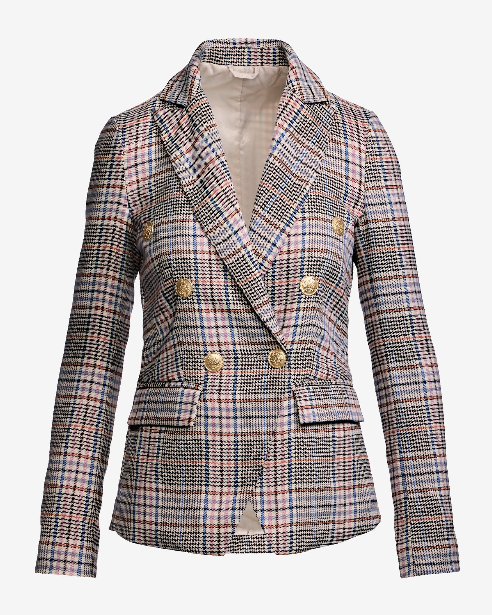 Chic Plaid Double Breasted Blazer Ivory Multi
