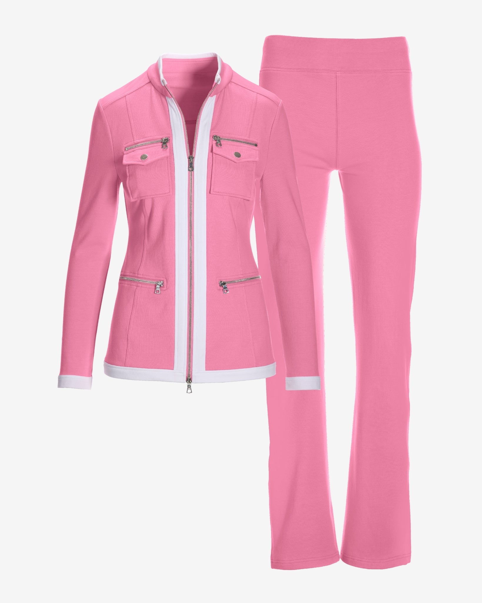 Chic Zippered Sport Coordinate Set Fuchsia Pink