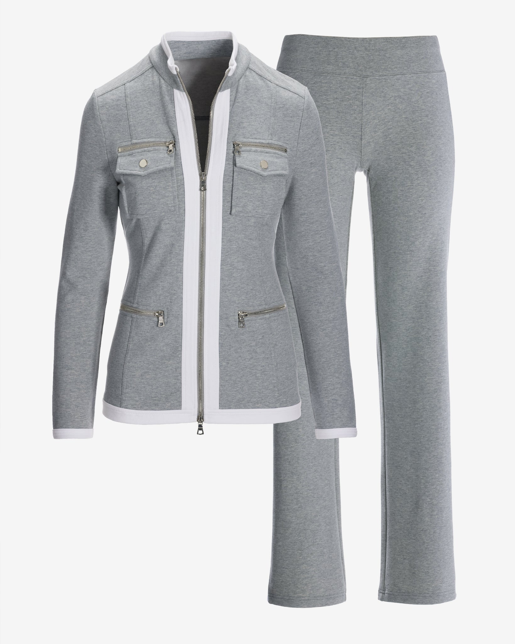 Chic Zippered Sport Coordinate Set Heather Gray/White