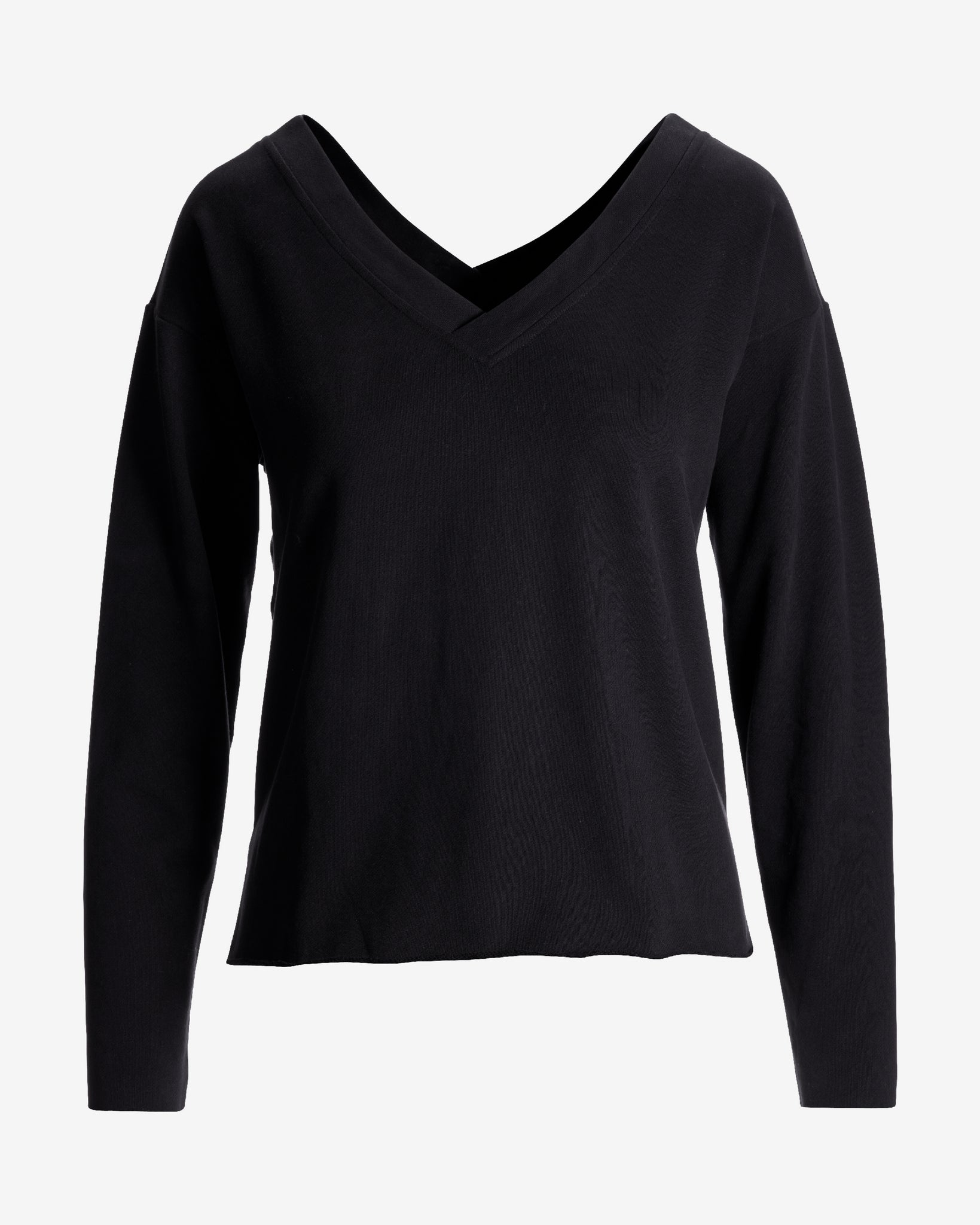 Luxurious, 100% cotton fabric lends a cozy-soft feel to our Cotton Comfort Double V Neck Sweatshirt, which features an effortless drop shoulder and wide front/back V-neckline for a relaxed vibe. Pair with the matching jogger for coordinated comfort.