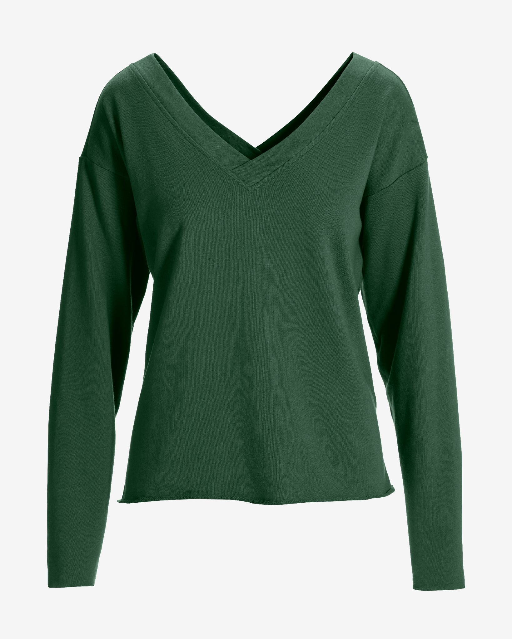 Cotton Comfort Double V Neck Sweatshirt Thyme Green