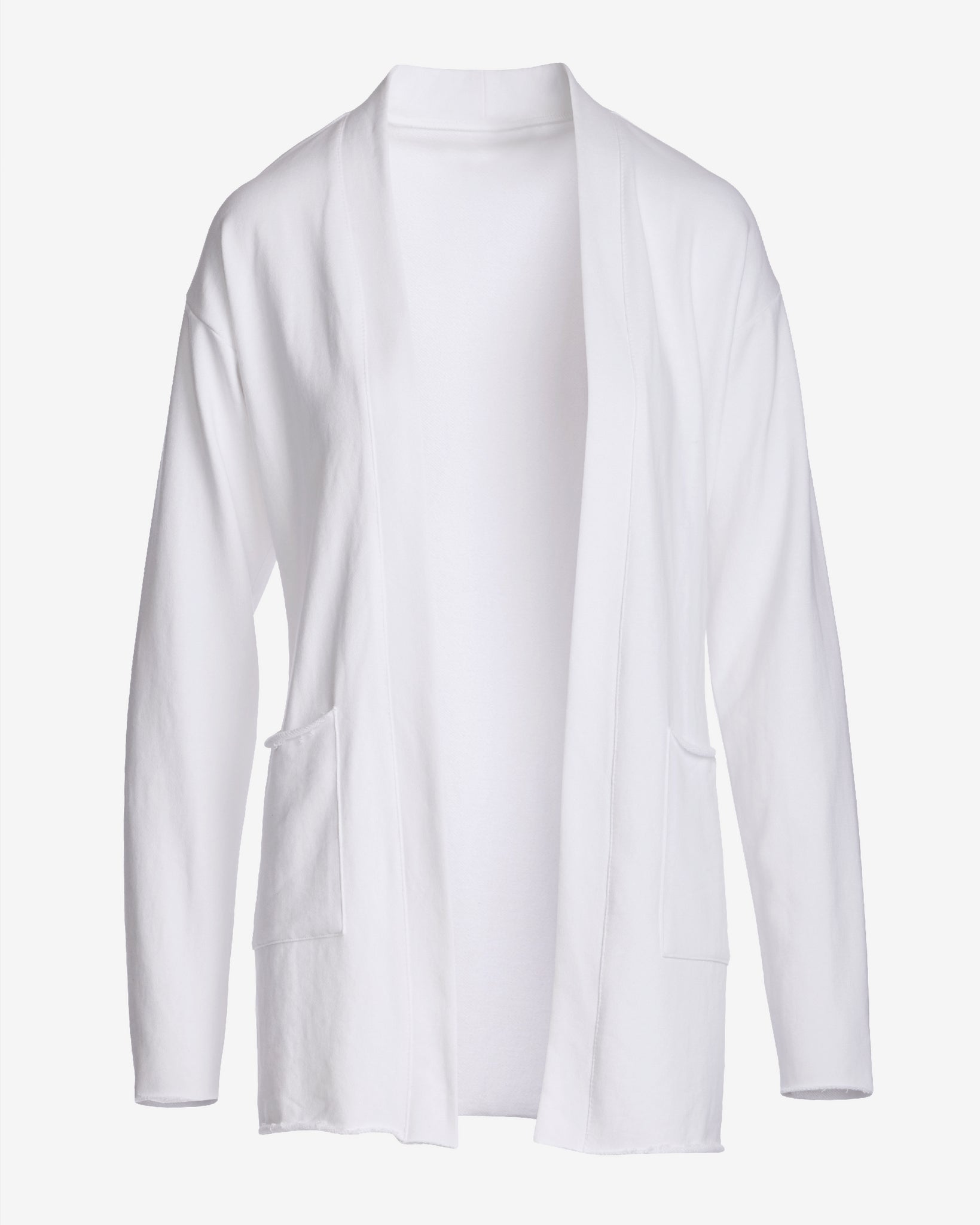 Luxurious 100% cotton fabric lends a cozy-soft feel to our Cotton Comfort pocket cardigan. Featuring drop shoulders, patch pockets, and raw-edge finishes for a relaxed vibe, this easy, open-front layer is perfect for casual days or cozy nights.