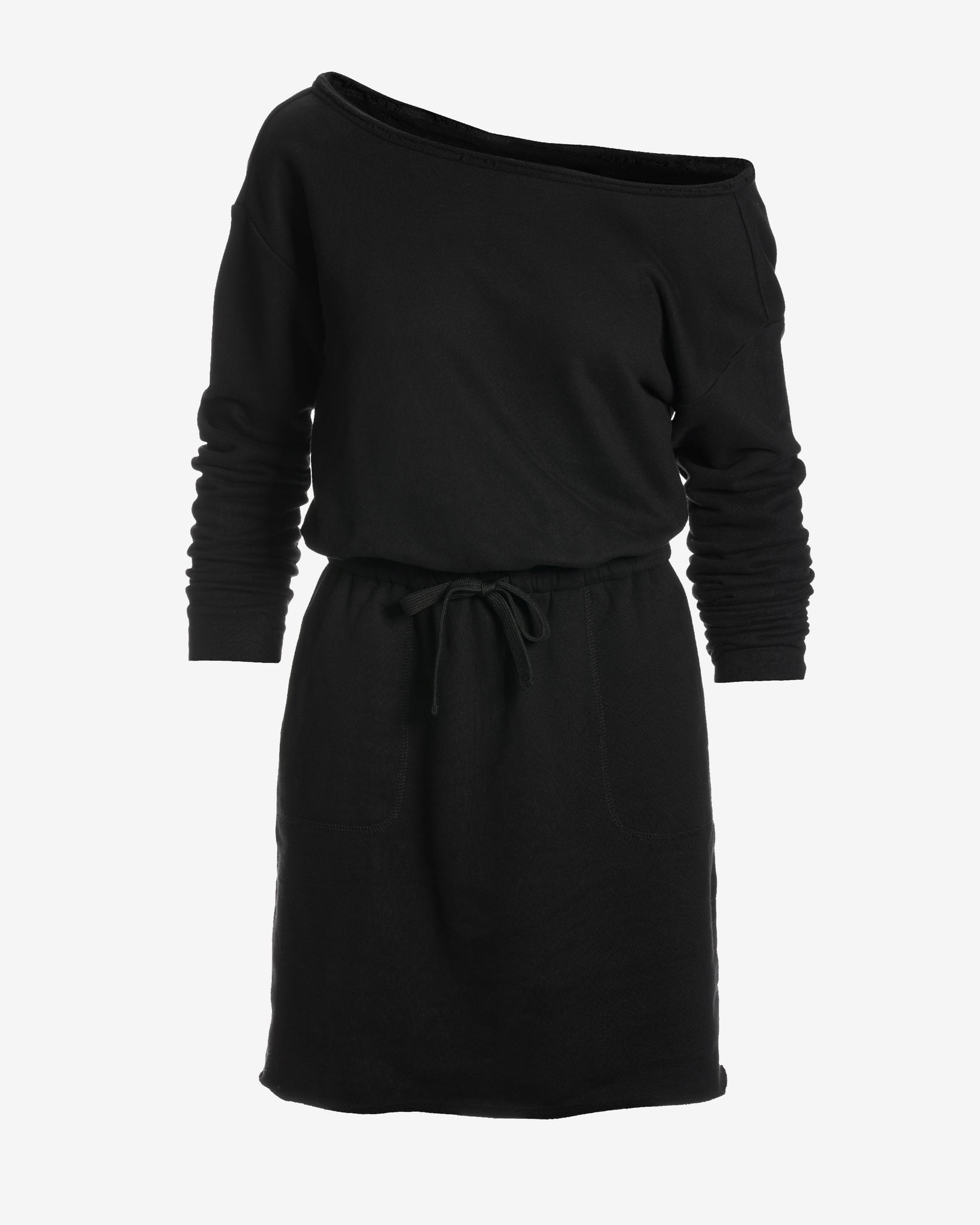 Cotton Comfort Slouchy Drawstring Sport Dress Black