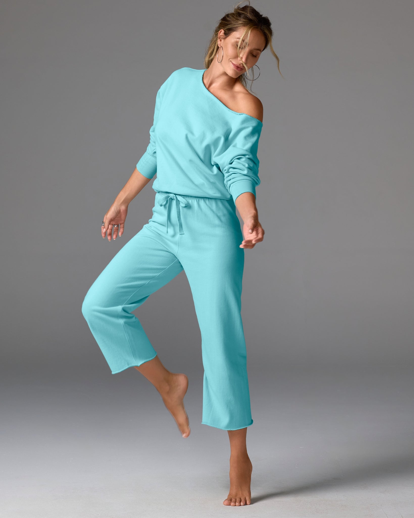 Cotton Comfort Wide Leg Lounge Pant Aqua Splash
