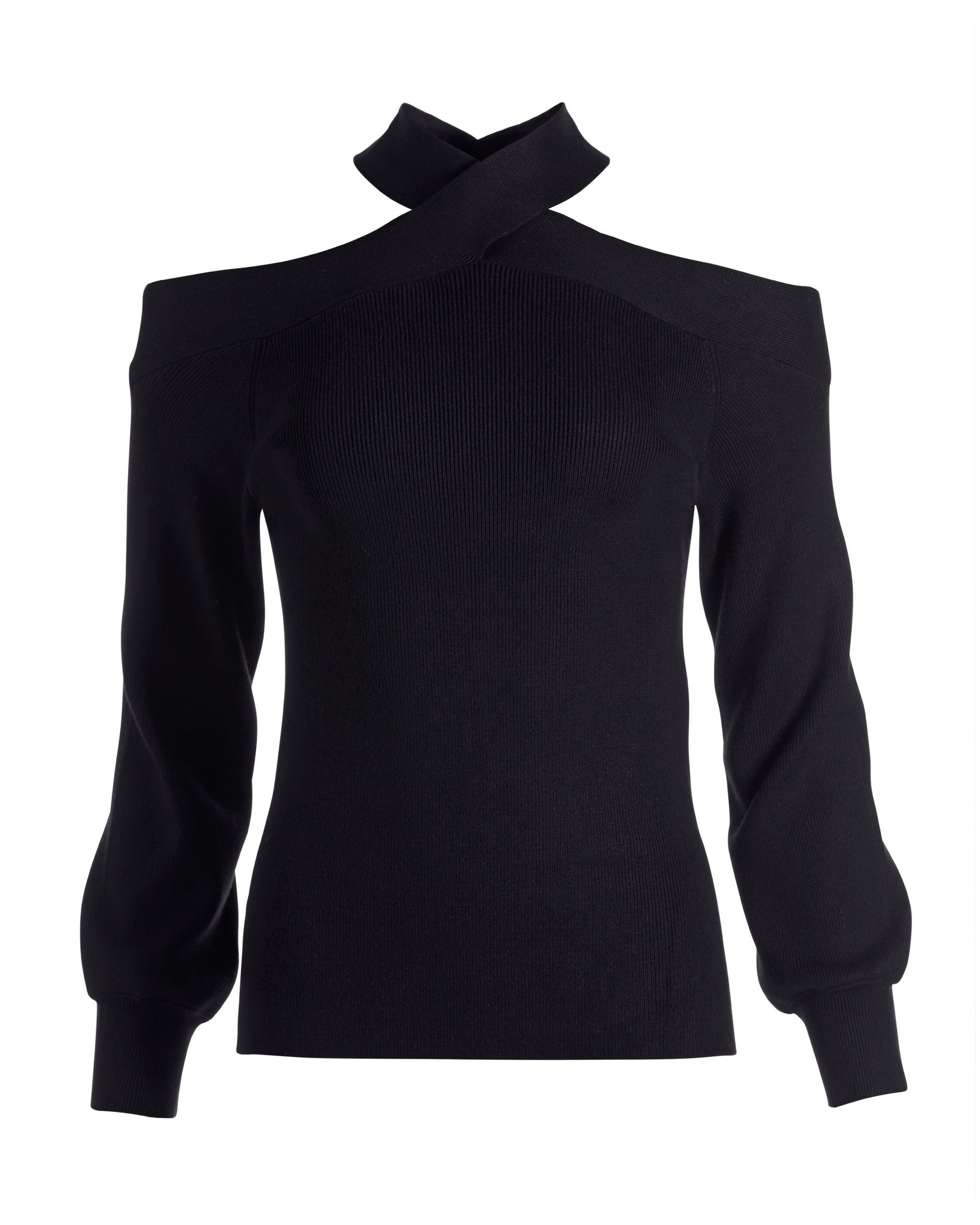 Criss Cross Off the Shoulder Twist Detail Sweater Black