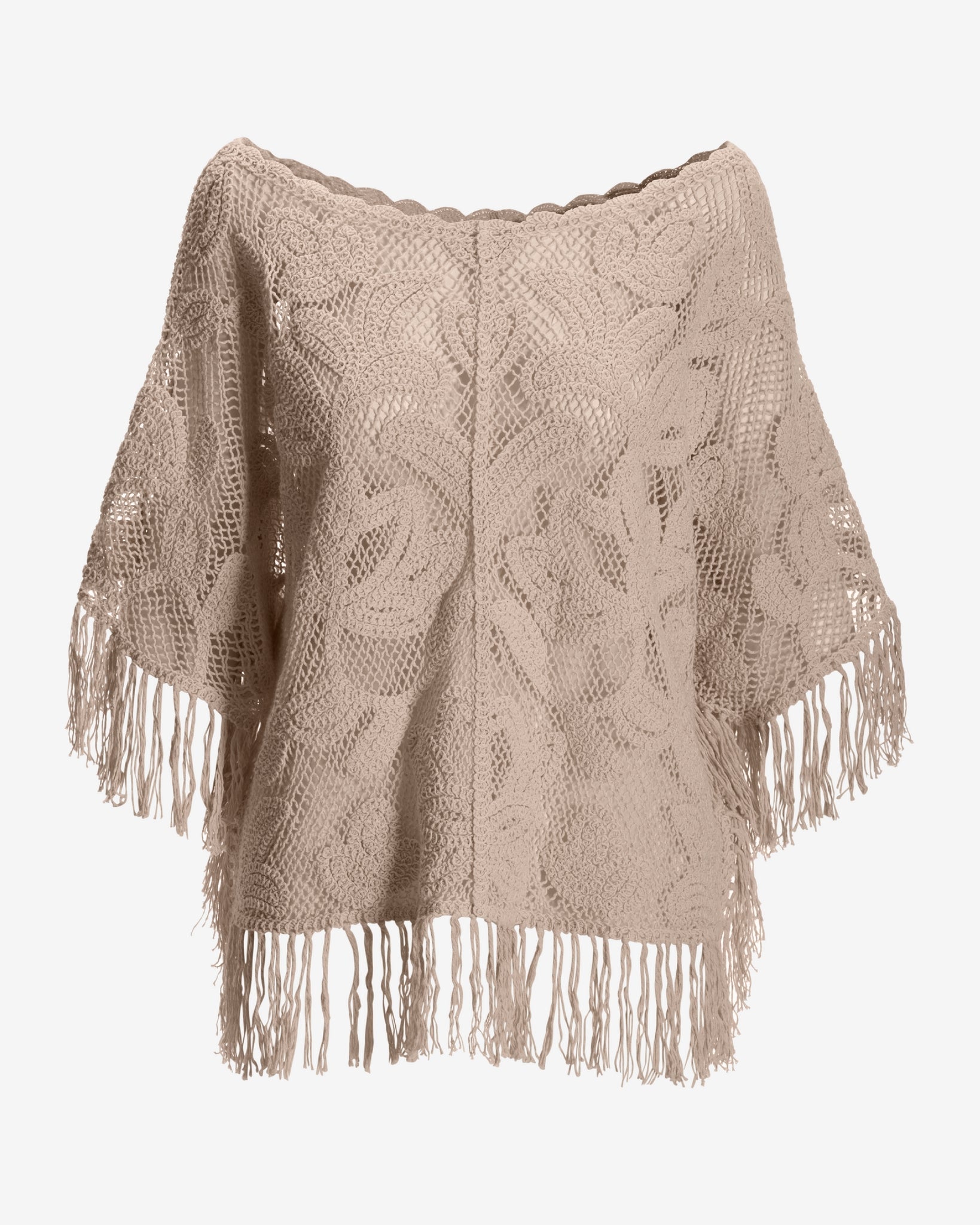 Effortlessly chic, our Crochet Slouchy Fringe Poncho adds interest to any ensemble while keeping the chill away. Crafted with a casual fit and boho-chic fringe trim, it's the perfect layering piece for now and into next season.