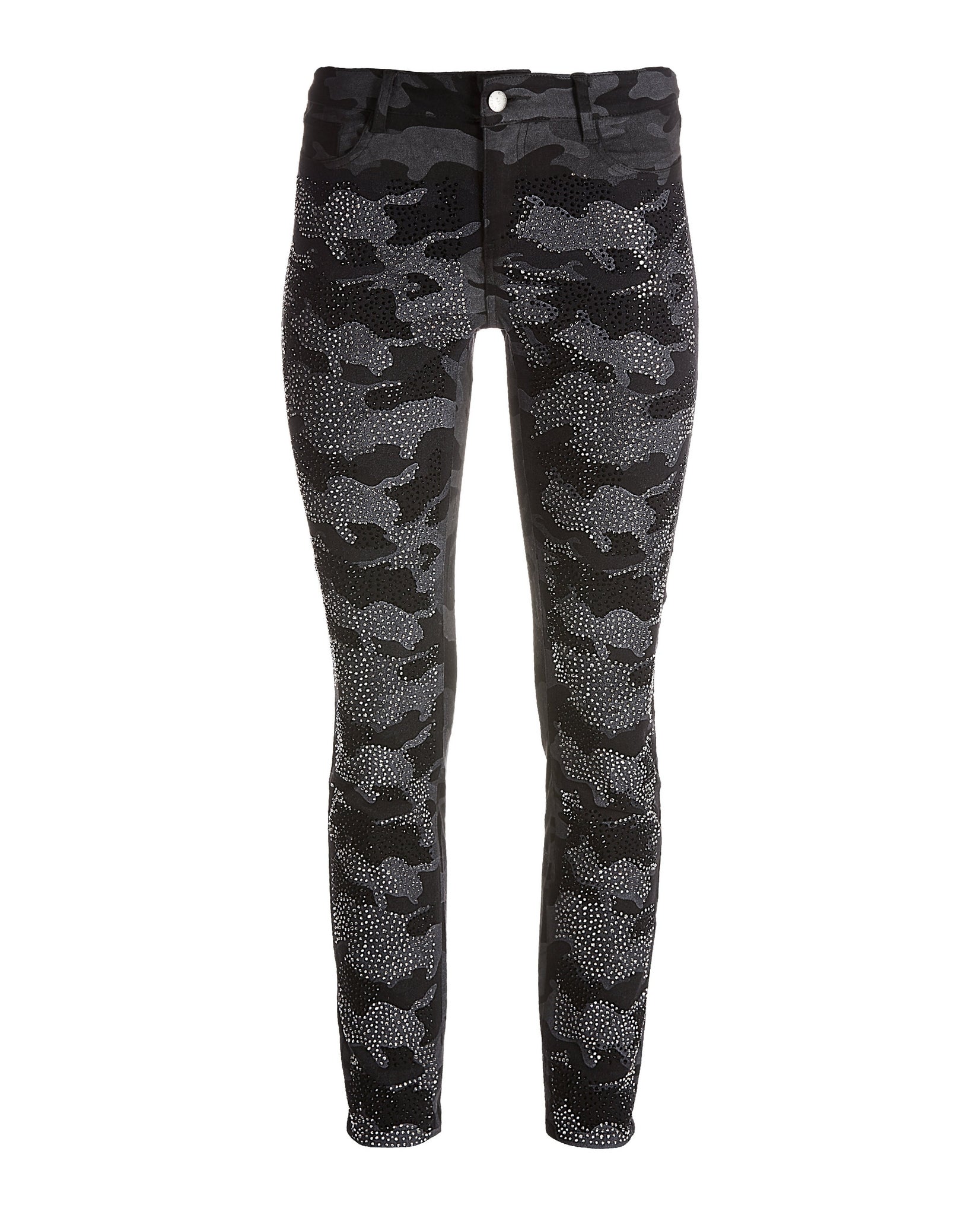 Crystal Embellished Camo Ankle Jean Black/Gray