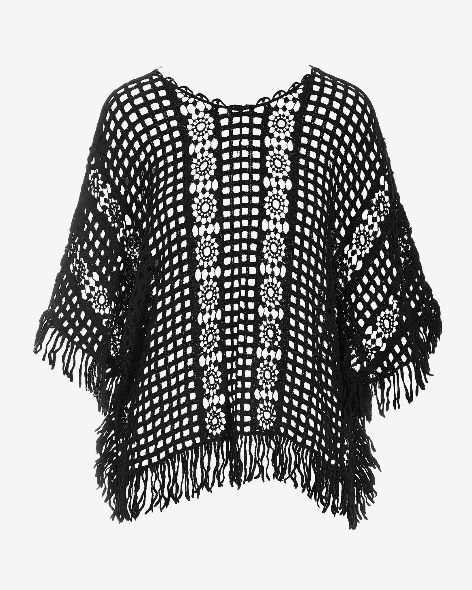 This open crochet poncho adds style to casual summer outfits in an easy, relaxed silhouette. Perfect for layering over bathing suits, tank tops and camisoles.