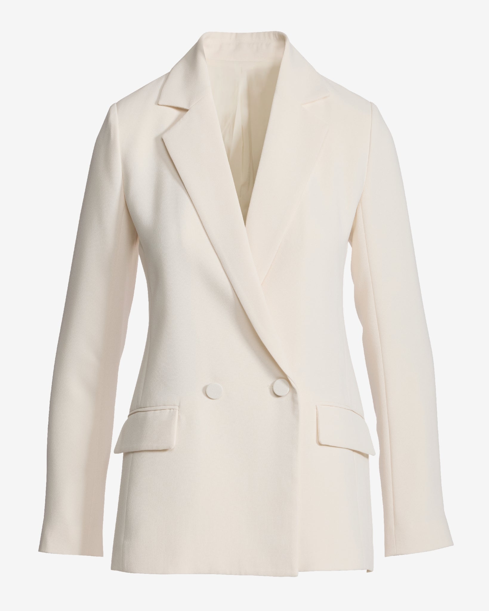 On-trend meets tailored perfection. Our drape blazer features a more relaxed, effortless fit with a notched collar, double covered-button closure, and flattering seaming. It’s the ideal blend of polished casualness and versatility for your day-to-evening style.