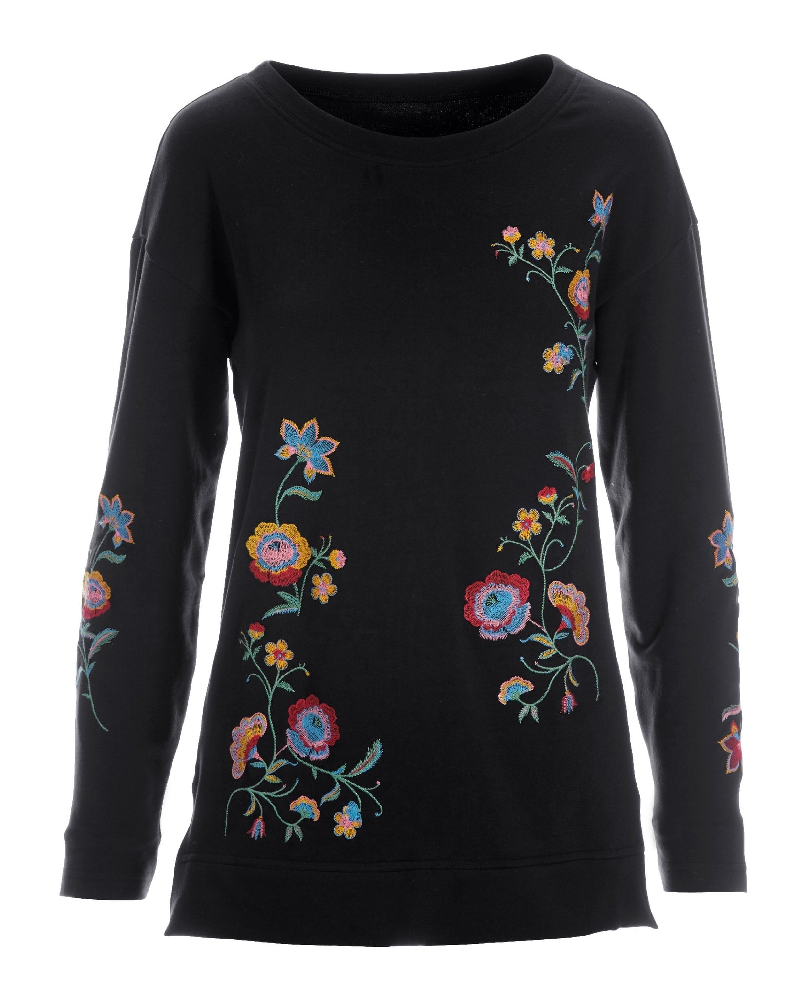 Super-soft fabrication and bright pops of floral embroidery make our flattering tunic-length sweatshirt as comfortable as it is stylish. Pair with our versatile, coordinating Embroidered Legging.