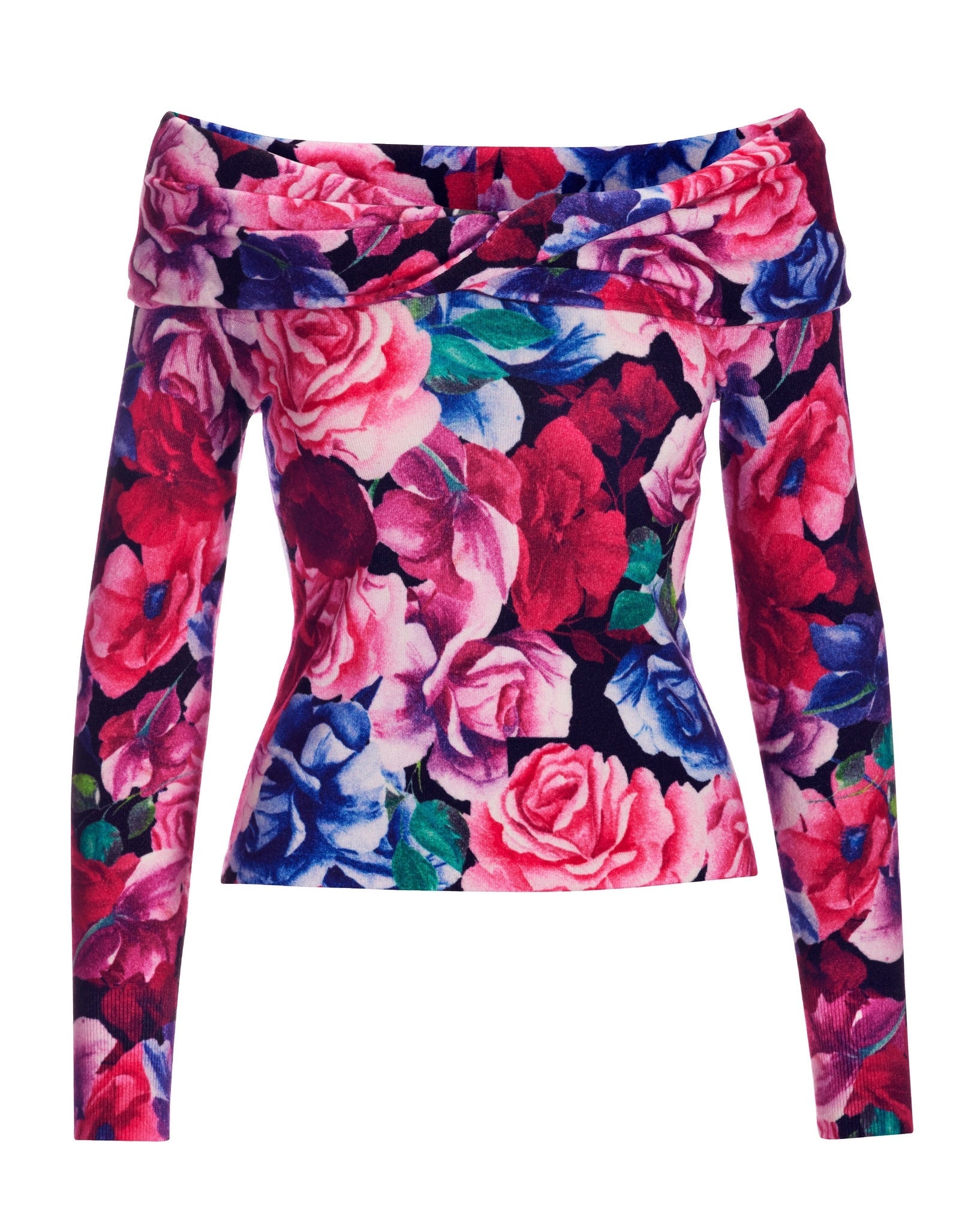 A shoulder-skimming silhouette lends an extra feminine touch to our print floral sweater. With a shoulder-skimming twist-front neckline, the look offers chic style. Pair it to jeans and trouser cuts for an elevated night out look.