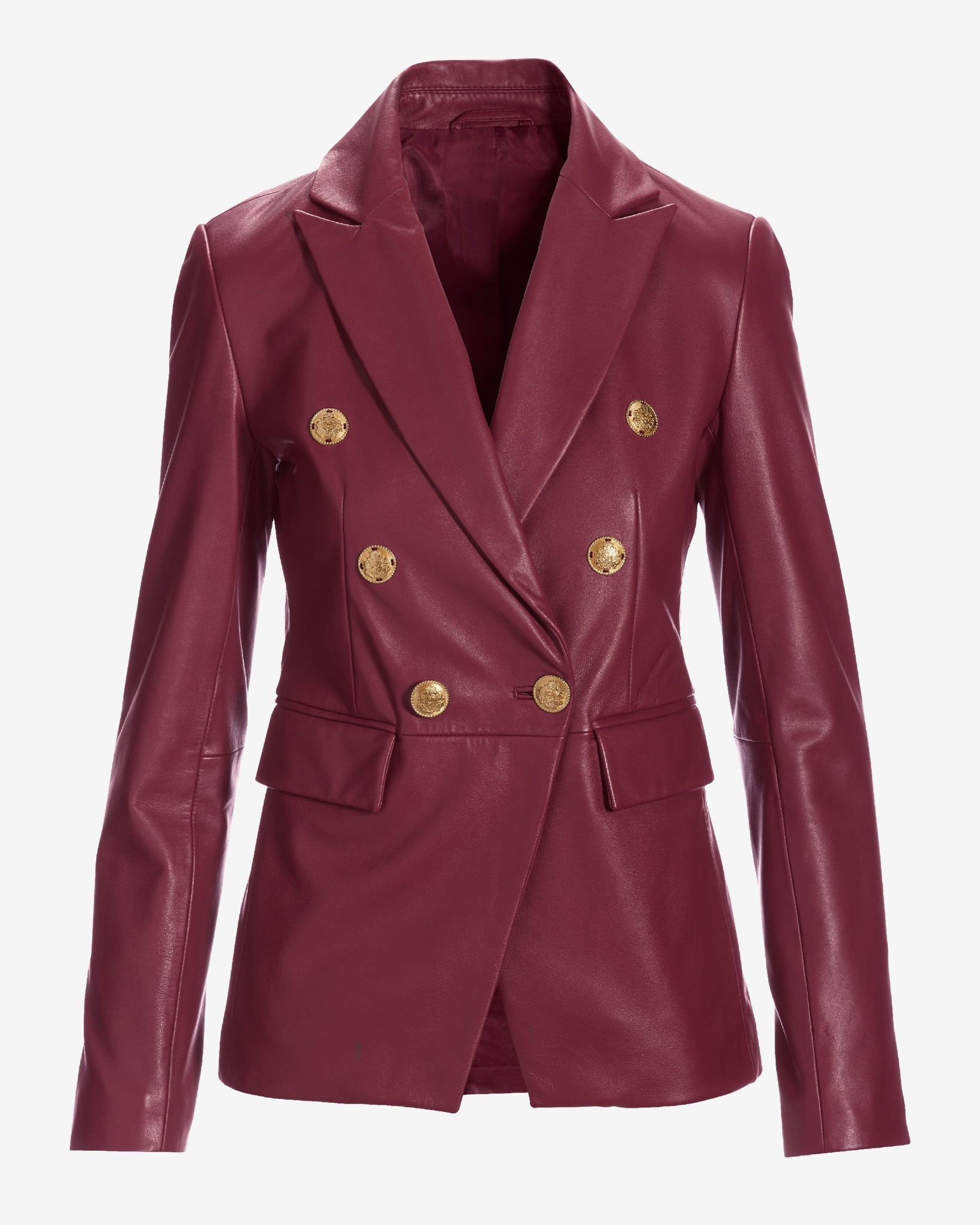 Genuine Leather Double Breasted Blazer Wine