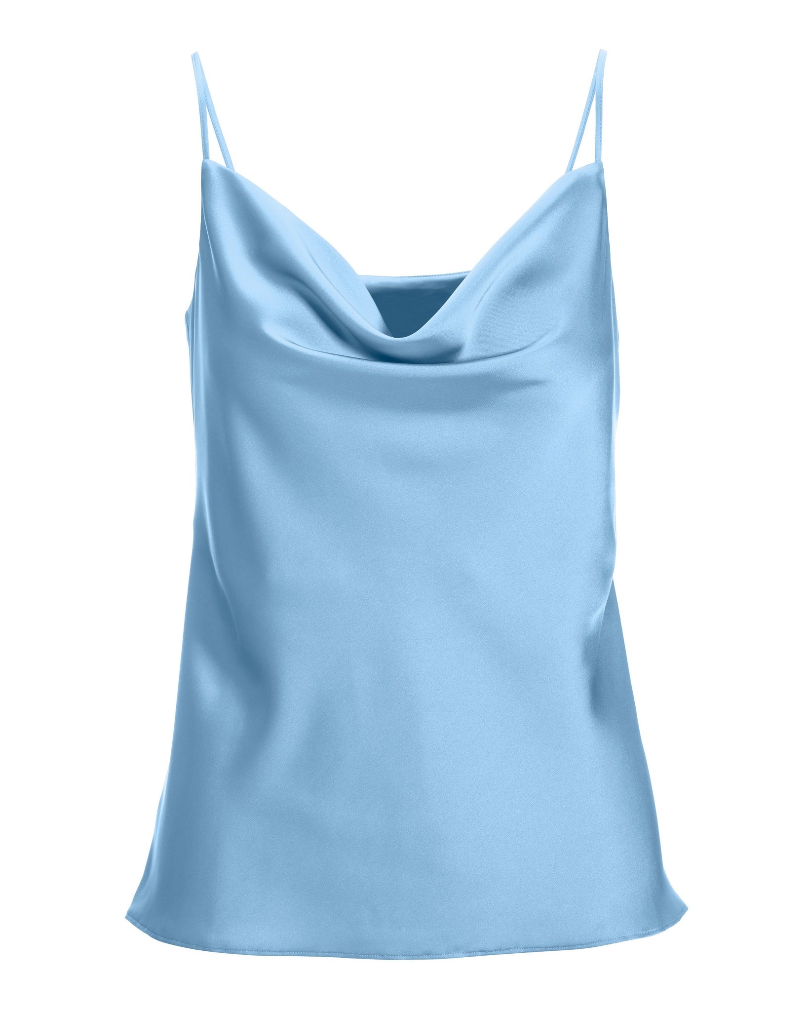 Silky soft charmeuse cami boasts the most flattering drapey cowl neckline and adjustable shoulder straps. It's a versatile top to create luxe looks when paired with denim jeans or trouser pants.