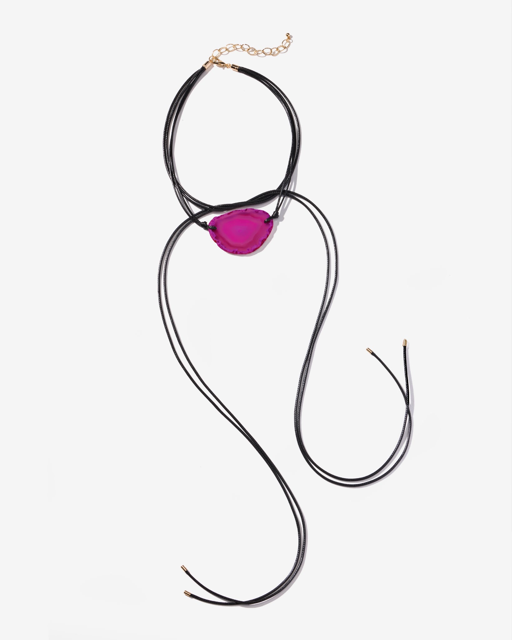 Gold Trim Tie Around Necklace Black