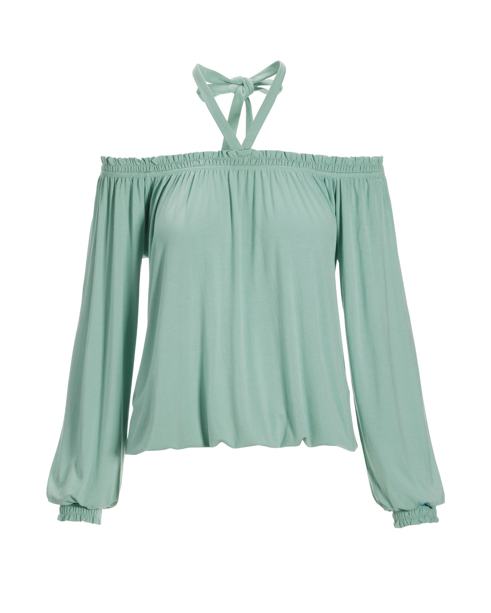 Halter Strap Off-The-Shoulder Effortless Knit Top Sage