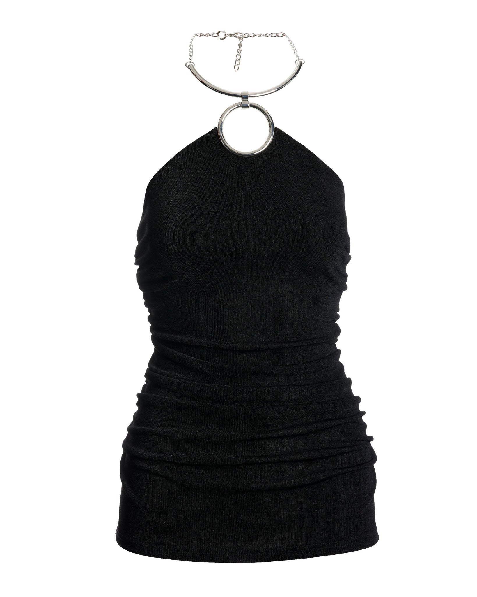 Made from a soft, easy stretch knit, our slinky tunic top allows for ultra-comfy style in the heat. It features flattering side ruching and a high neckline with a striking silver-toned hardware detail. Create the ultimate look by pairing with our matching slinky pants.