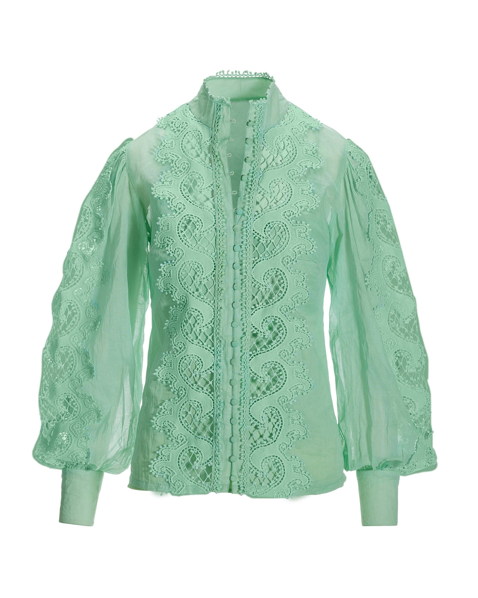 Lace Inset Drama Sleeve Shirt Mint
