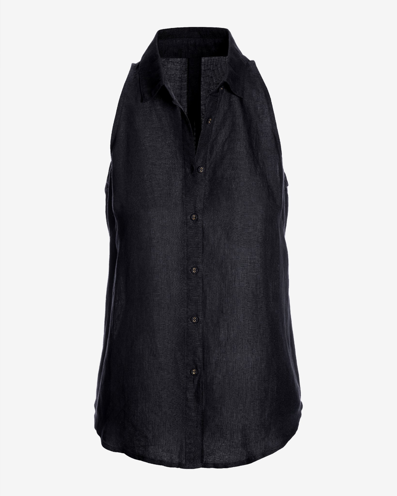 Tie it. Tuck it. Wear it anyway you like. This classic linen sleeveless shirt is a warm-weather essential with its breathable, keep-cool natural fabrication and sophisticated button-front shirt silhouette.