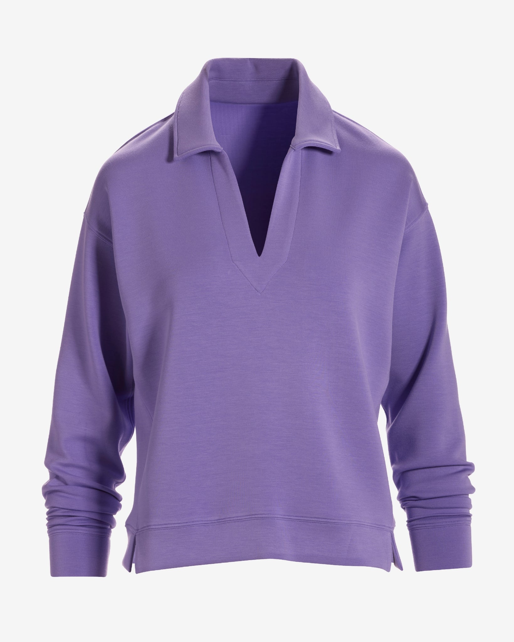 Cut from 100% polished cotton, our Luxe Lounge Collared Long Sleeve Sweatshirt combines effortless style with polished details. A pointed collar, V-neckline, and drop-shoulder design make it as stylish as it is comfortable--perfect for elevating your all-day laid-back look.