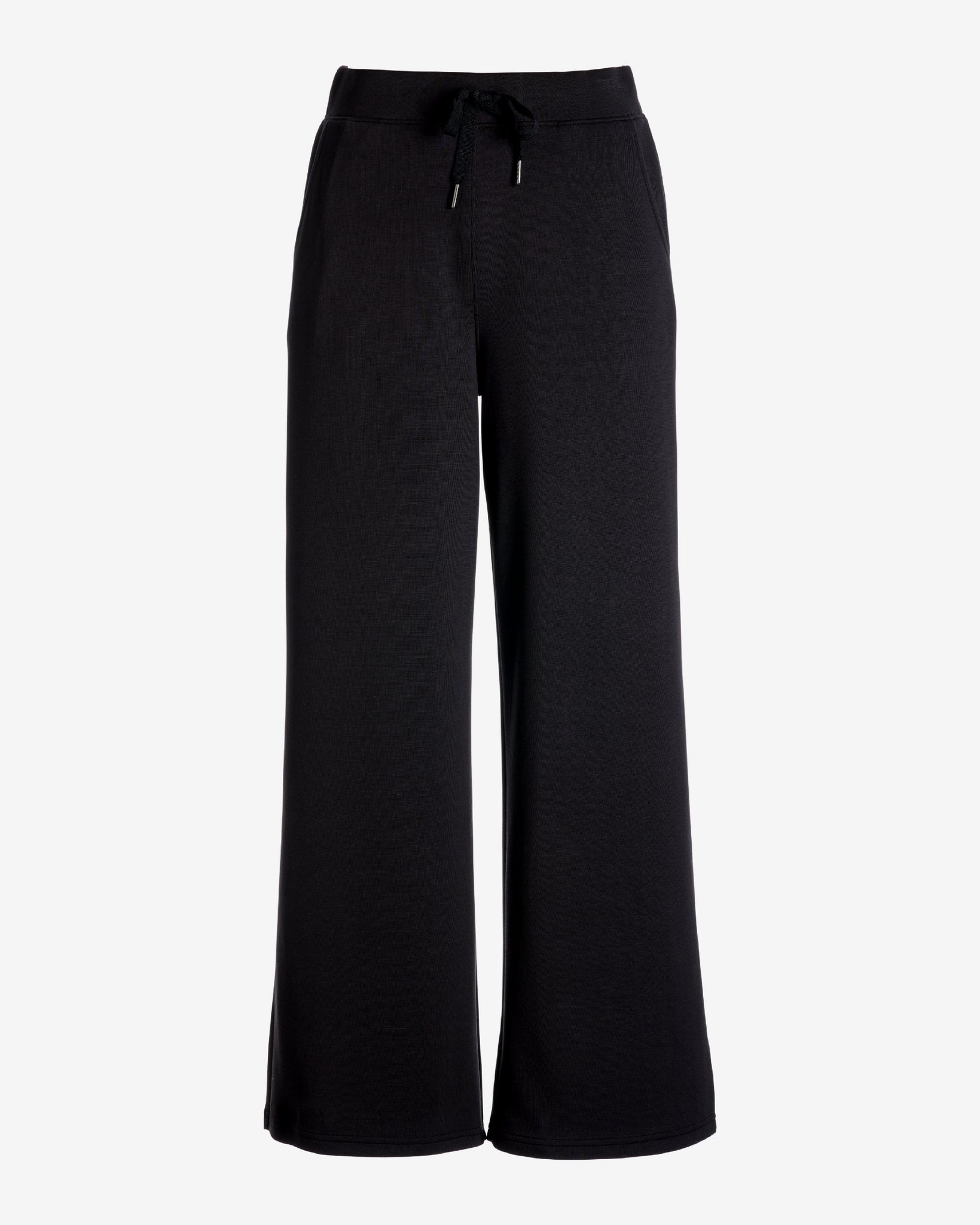 Made from a comfortable knit fabric with a hint of stretch, this wide-leg lounge pant provides effortless polish. It’s designed with an elastic drawstring waist and slash pockets for even more ease. Pairs well with our mock neck sport top for a sporty-casual look.