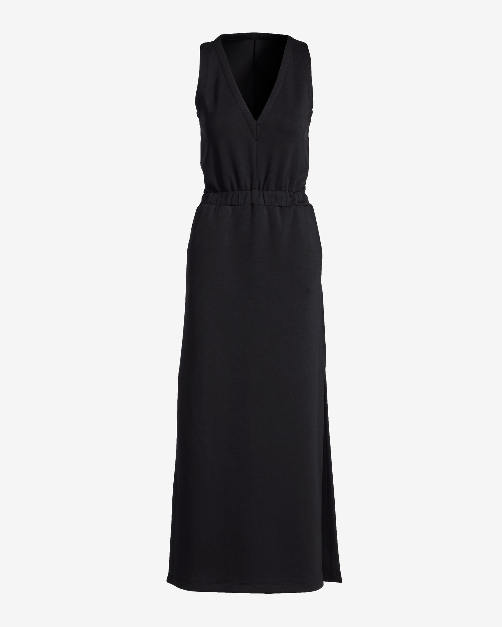 Cut from an elevated stretch knit, our Luxe Lounge V-neck maxi dress redefines laid-back sophistication. Featuring a sleeveless silhouette, V-neckline, and an elastic blouson waist, this pull-on style is finished with functional slash pockets, offering comfort and modern versatility.