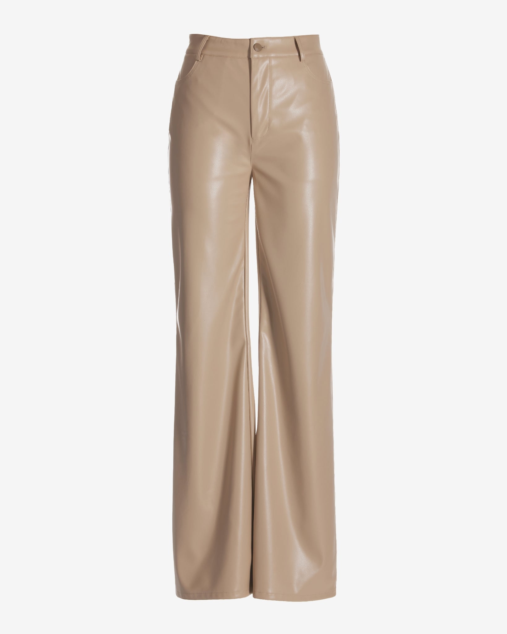 Malibu Faux Leather Wide Leg Five Pocket Pant Beige
