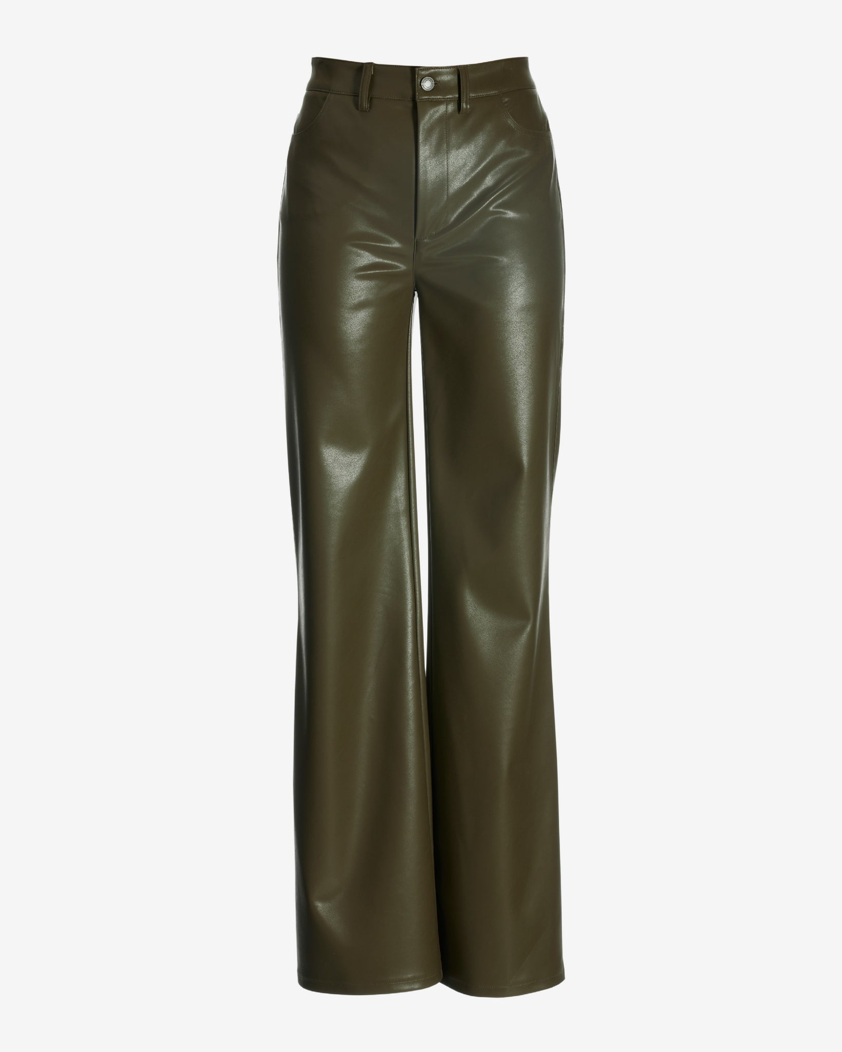 Malibu Wide Leg Five Pocket Faux Leather Pant Olive